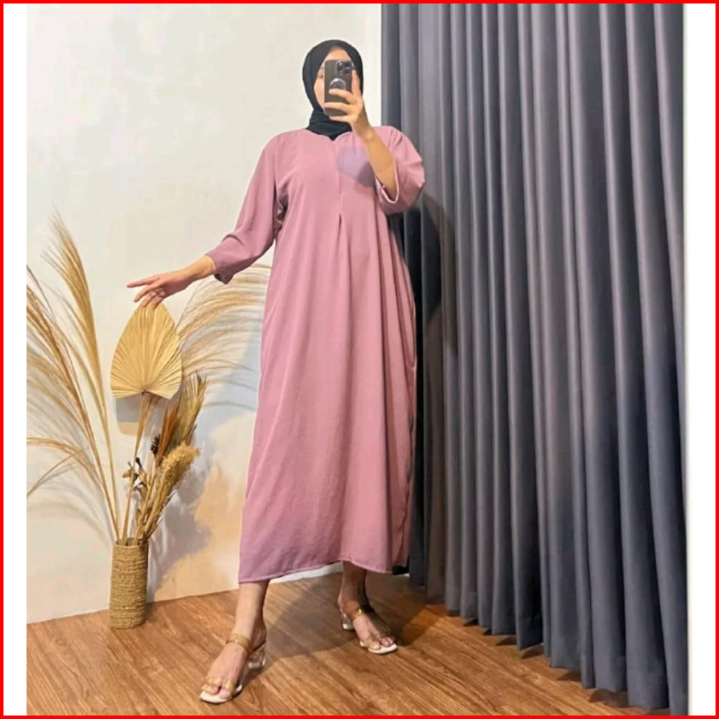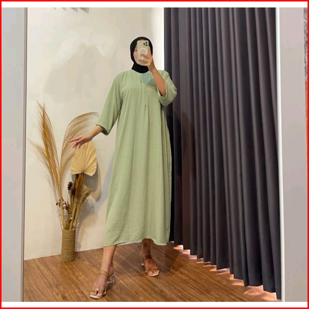 Daster Long Crincle Polos Model Lengan Tangan 3 4 Busui