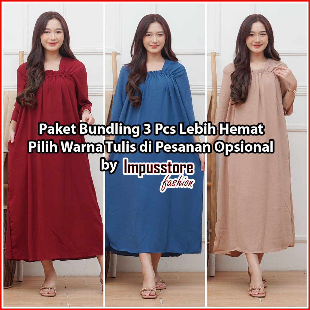 Paket 3 Pcs Daster Tania Crinkle Air Flow Kerut Dada Ruffle Polos Wanita By Impusstore