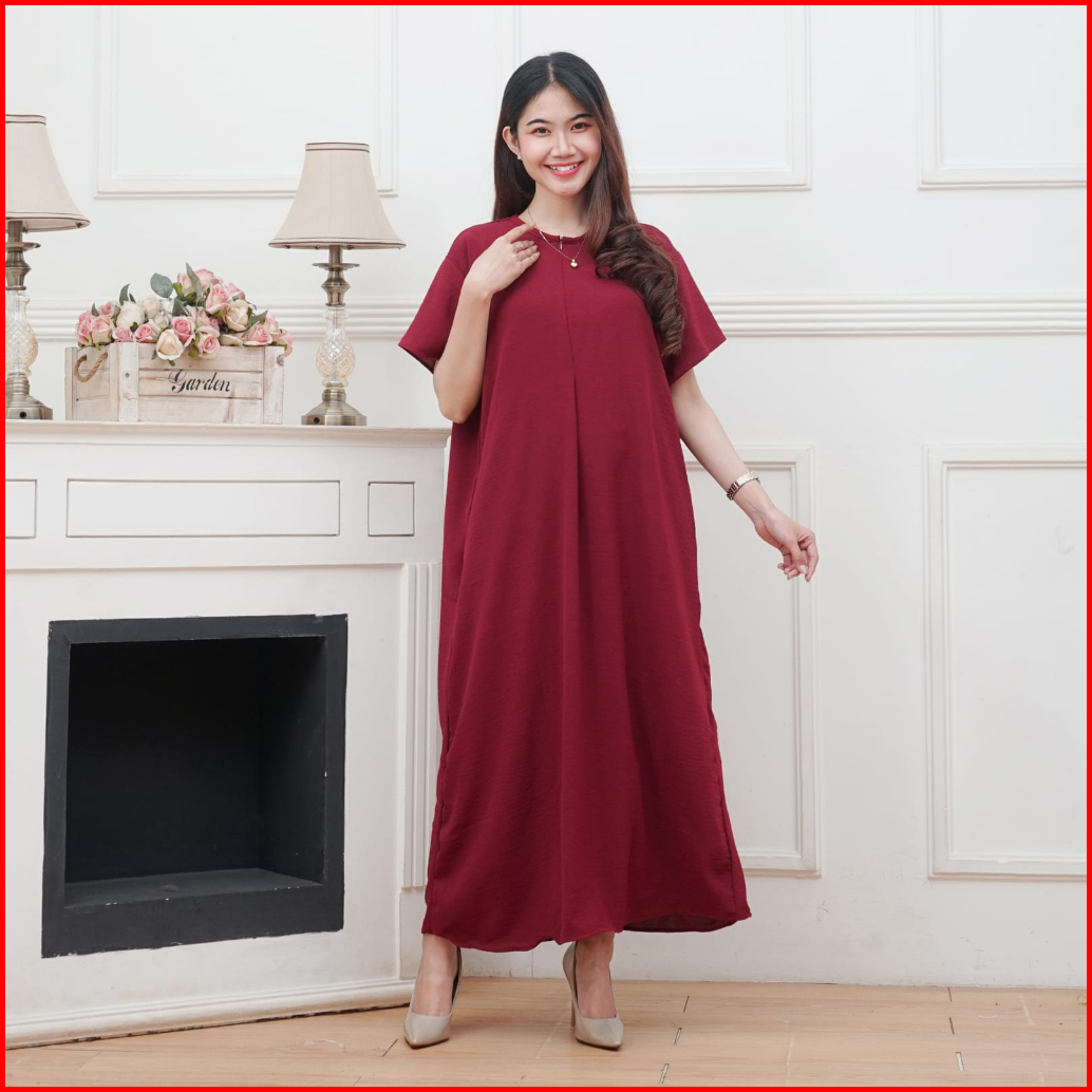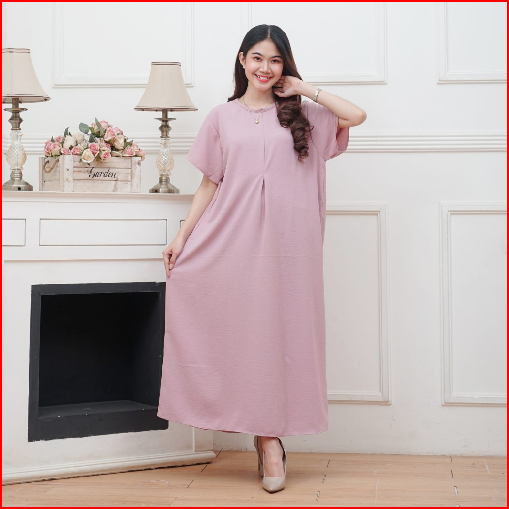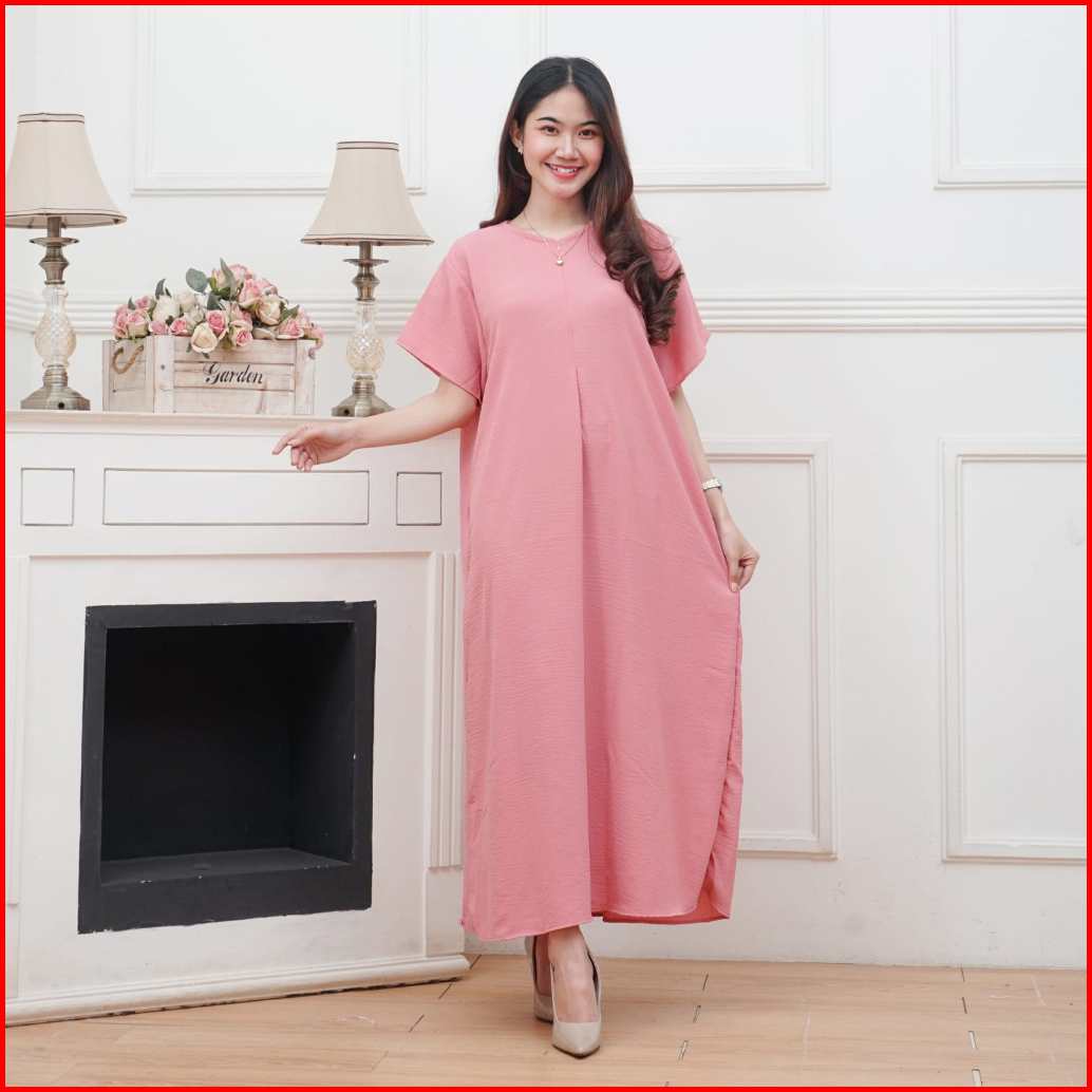 Daster Crinkle Polos Kekinian Lengan Pendek Panjang Semata Kaki Busui Jumbo Ld 120