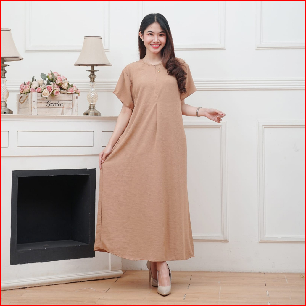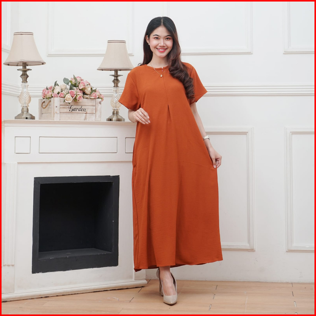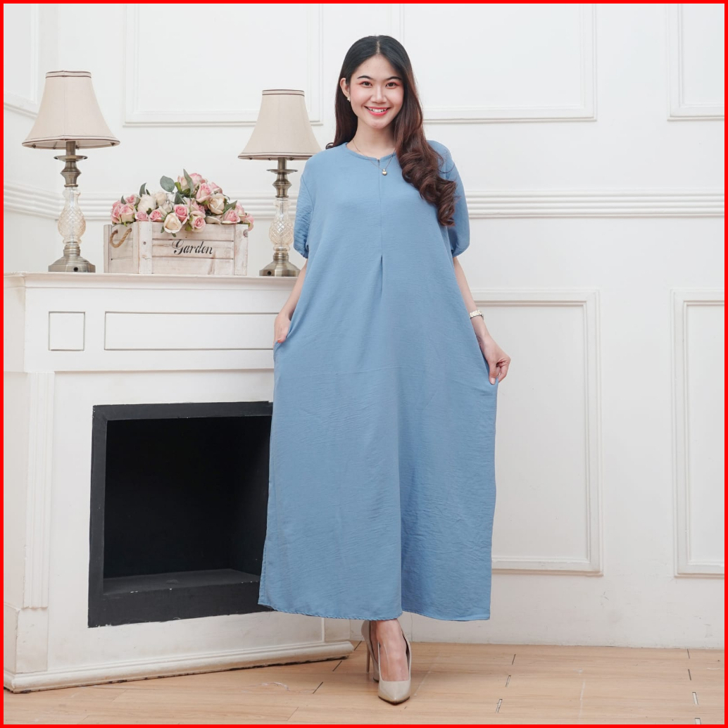 Daster Crinkle Polos Kekinian Lengan Pendek Panjang Semata Kaki Busui Jumbo Ld 120