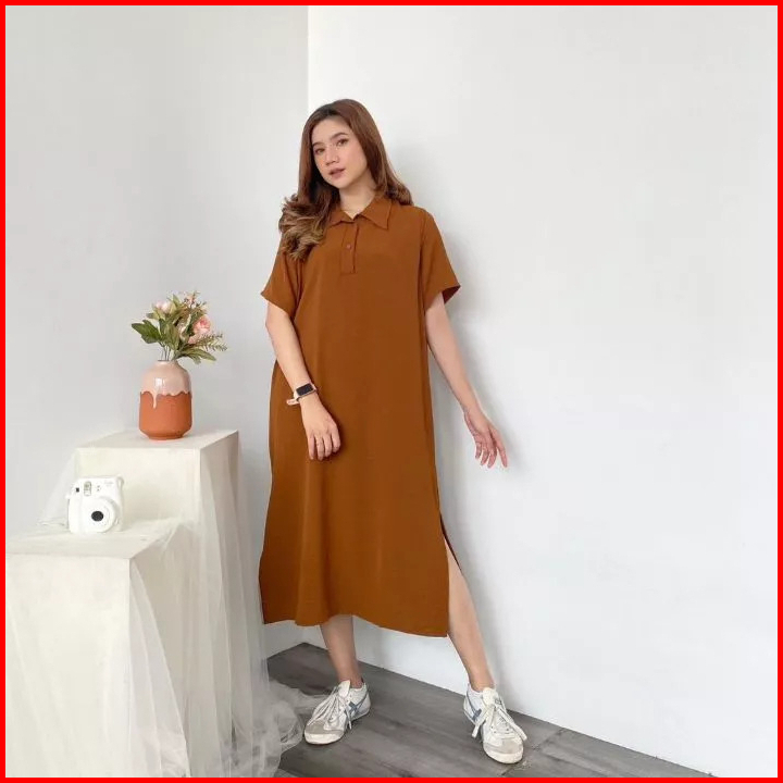 Dress Daster Kerah Kemeja Korean Style Home Dress Crinkle Daster Midi Dress