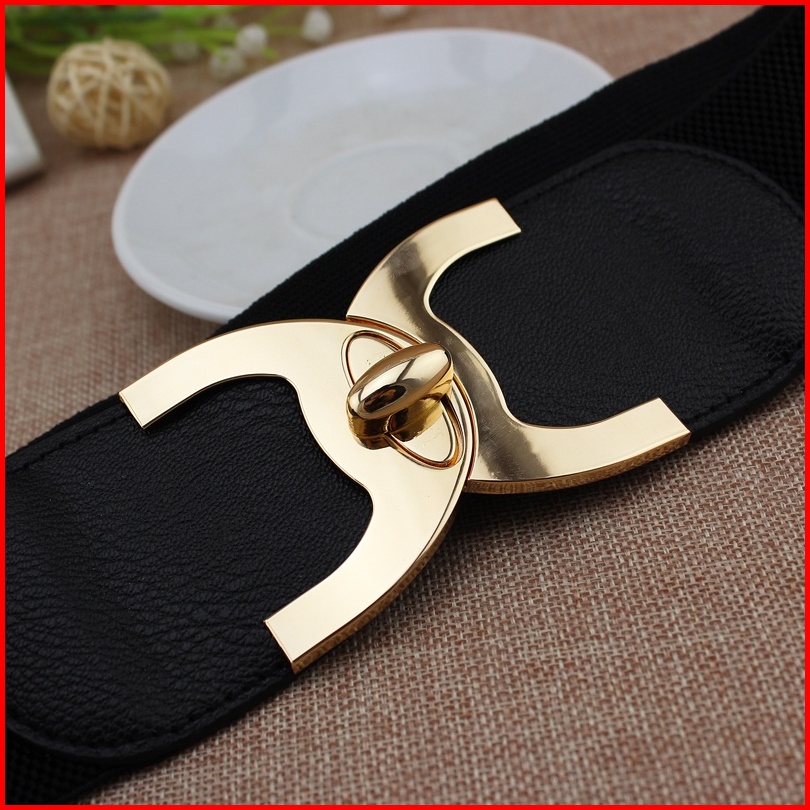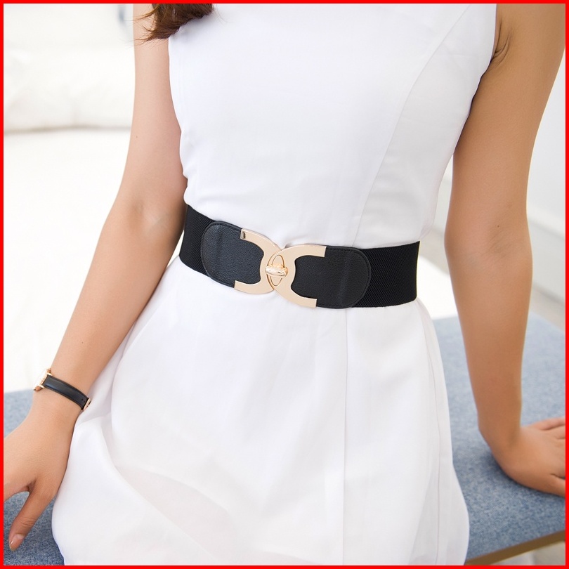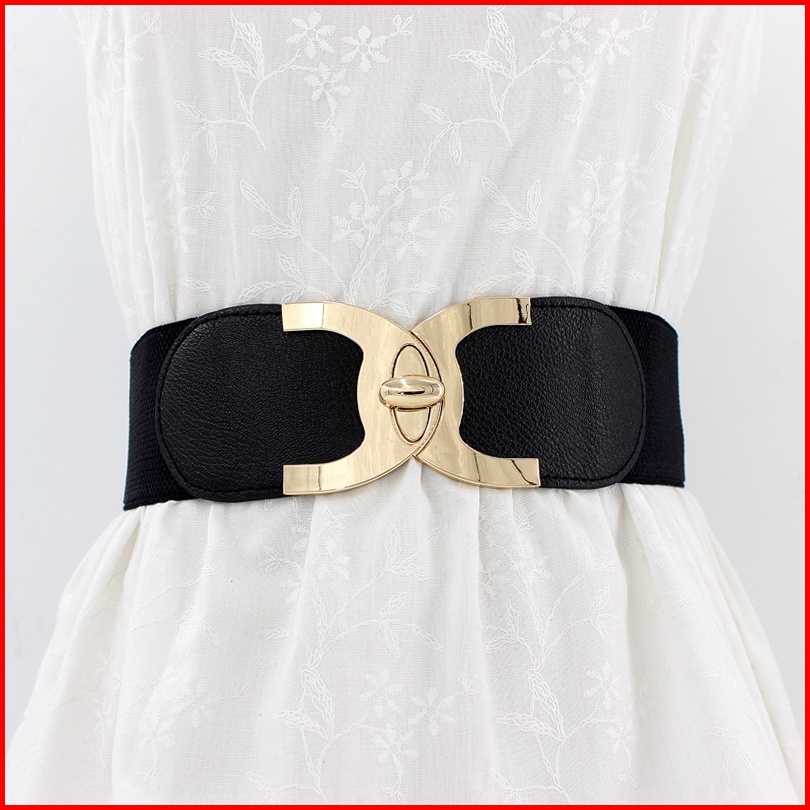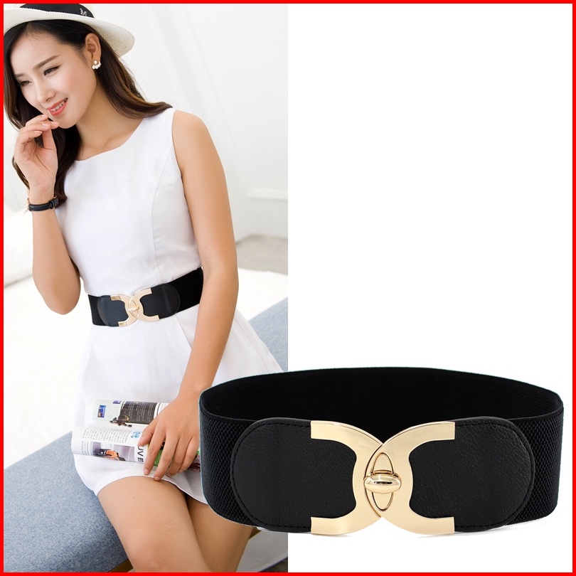 Bgs-189 Ikat Pinggang Gesper Karet Lebar Casual Untuk Aksesoris Dress Pakaian Wanita Bahan Kulit Pu Fashion Style