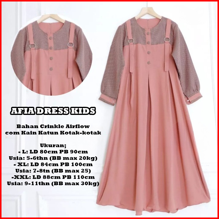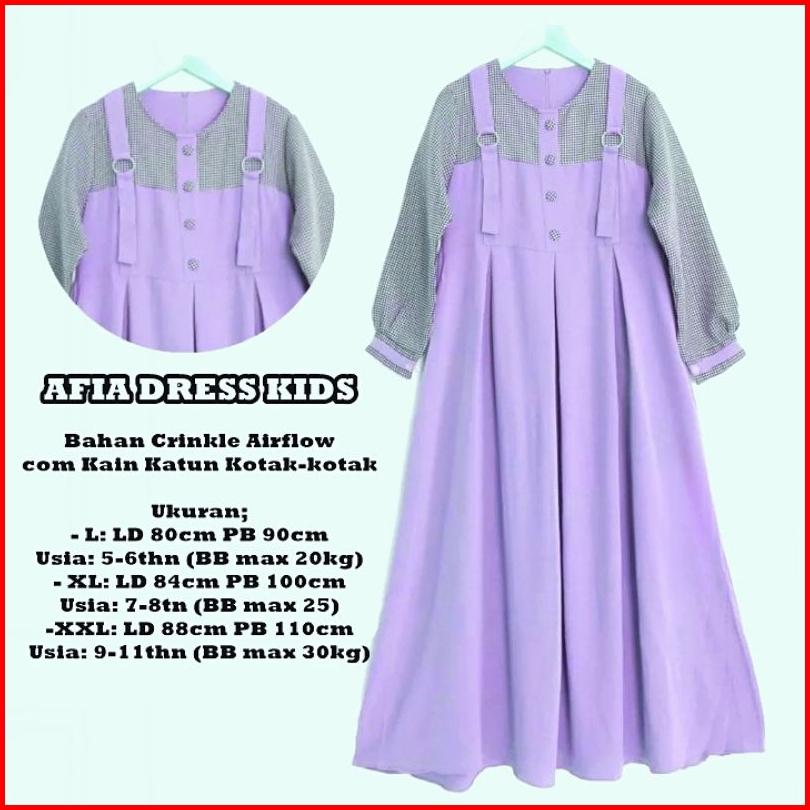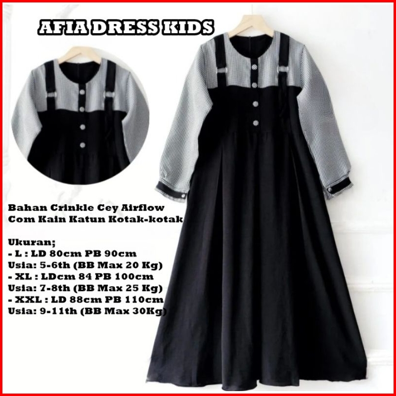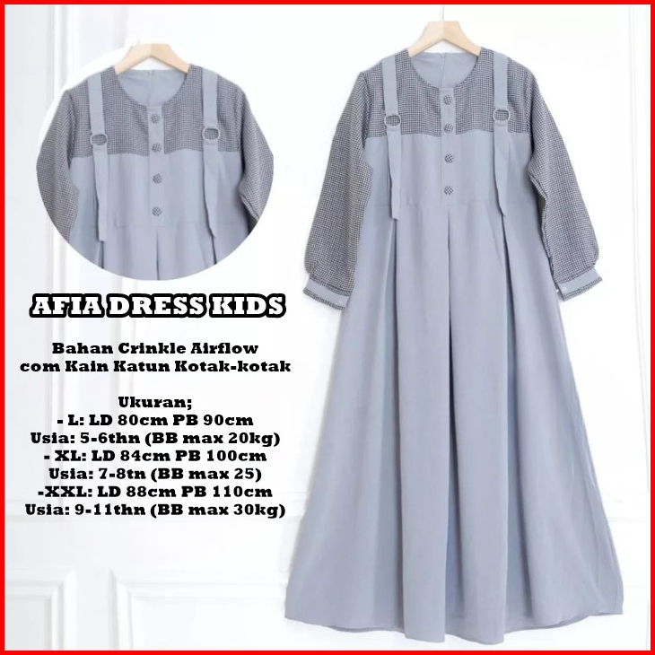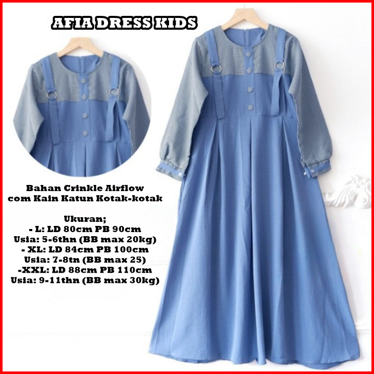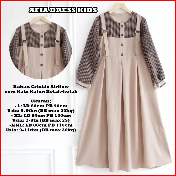 Afia Dress Kids Bahan Crinkle Airflow Gamis Anak Terbaru Termurah Terlaris Kekinian Lucu Combinasi Kain Katun Kotak-kota