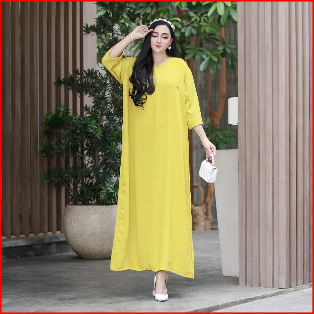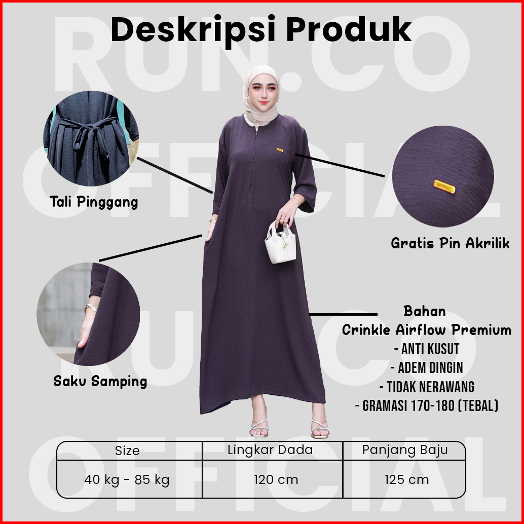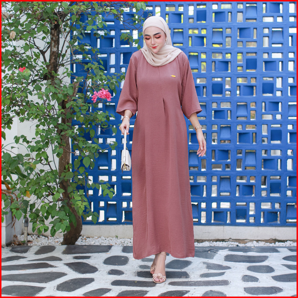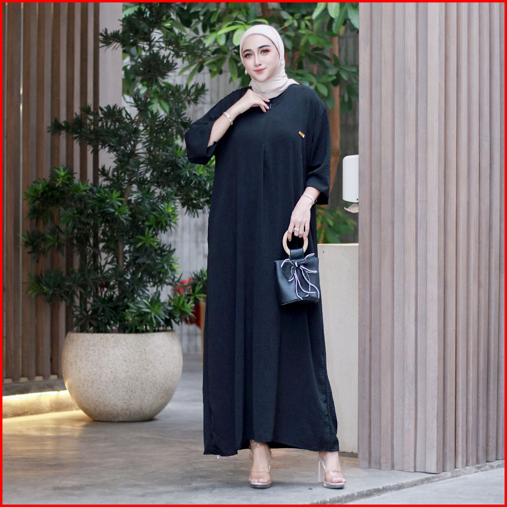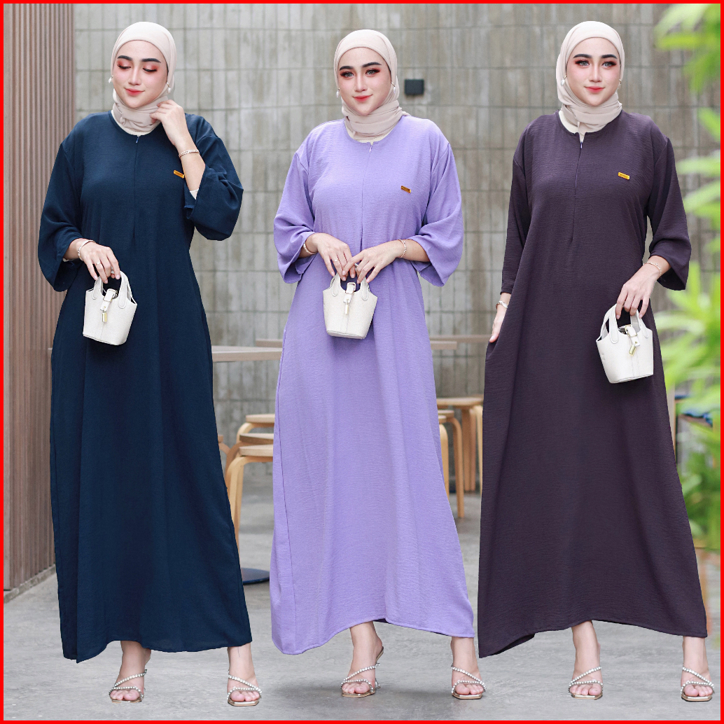 Zea Long Dress Tangan 3 4 Airflow Cringkle Busui Daster Gamis Panjang