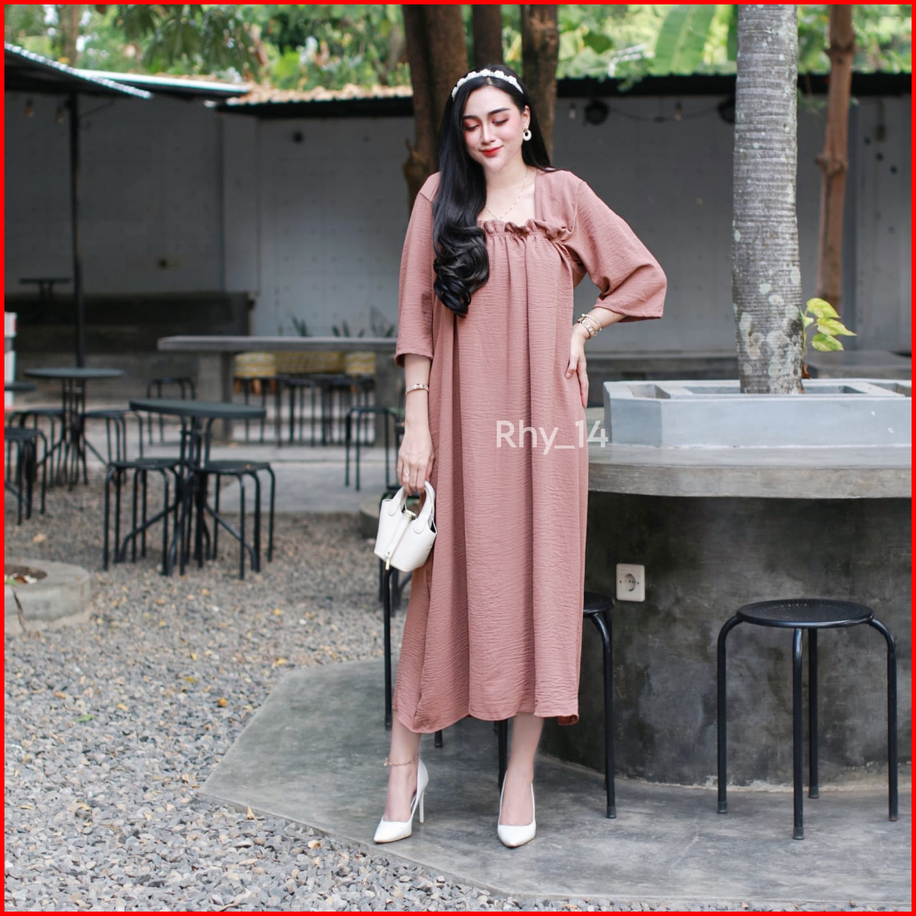 Daster Fuji Longdress Crinkle Airflow Longdress Fuji Crinkle Premium Dress Panjang Kerut Dada