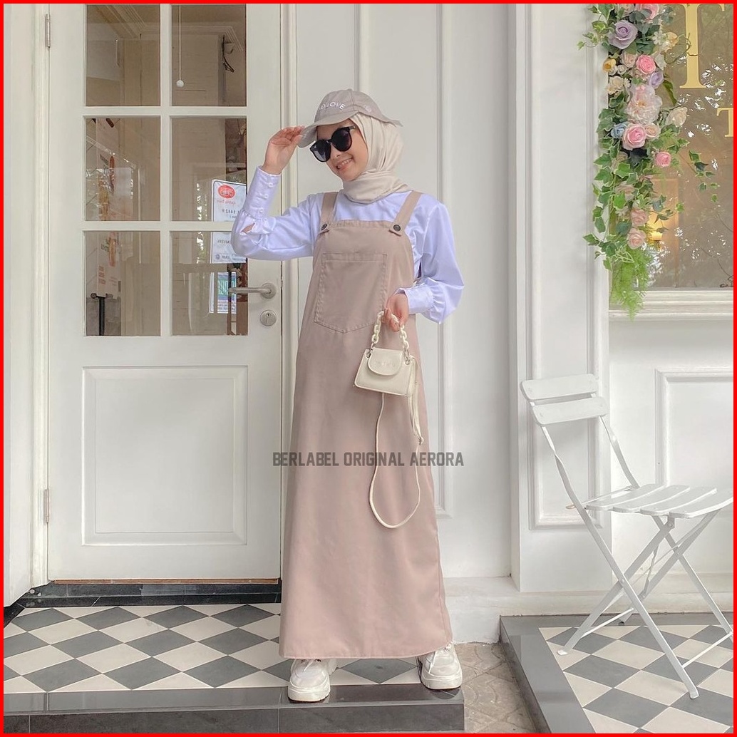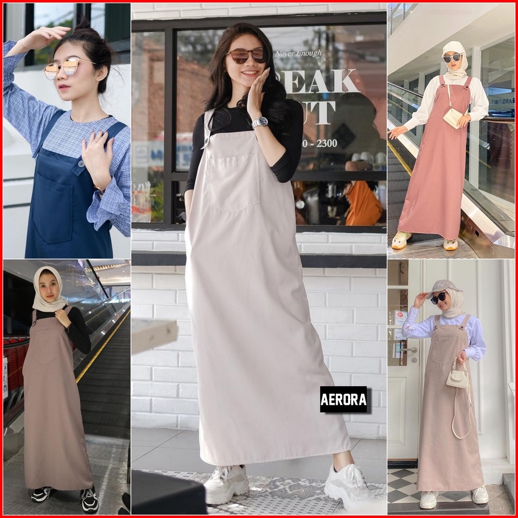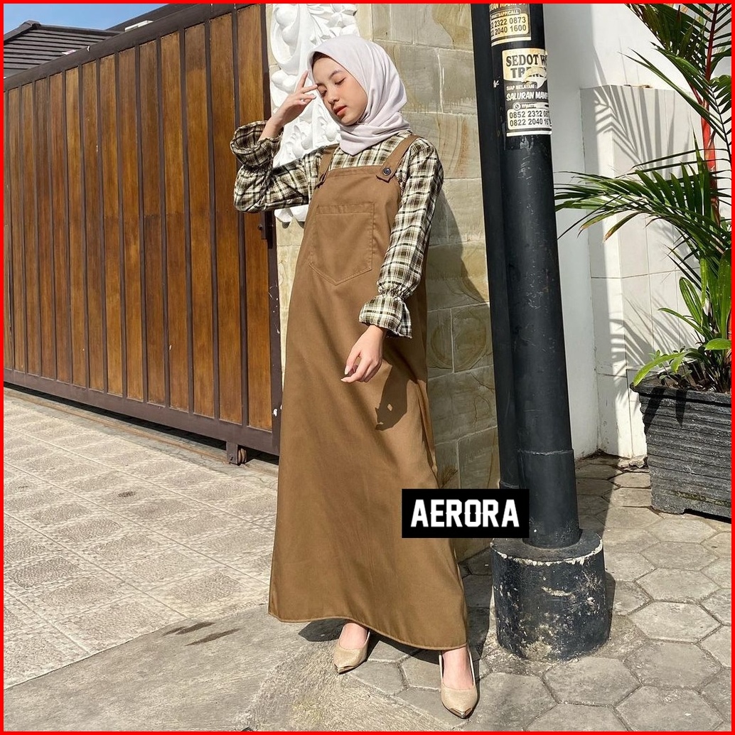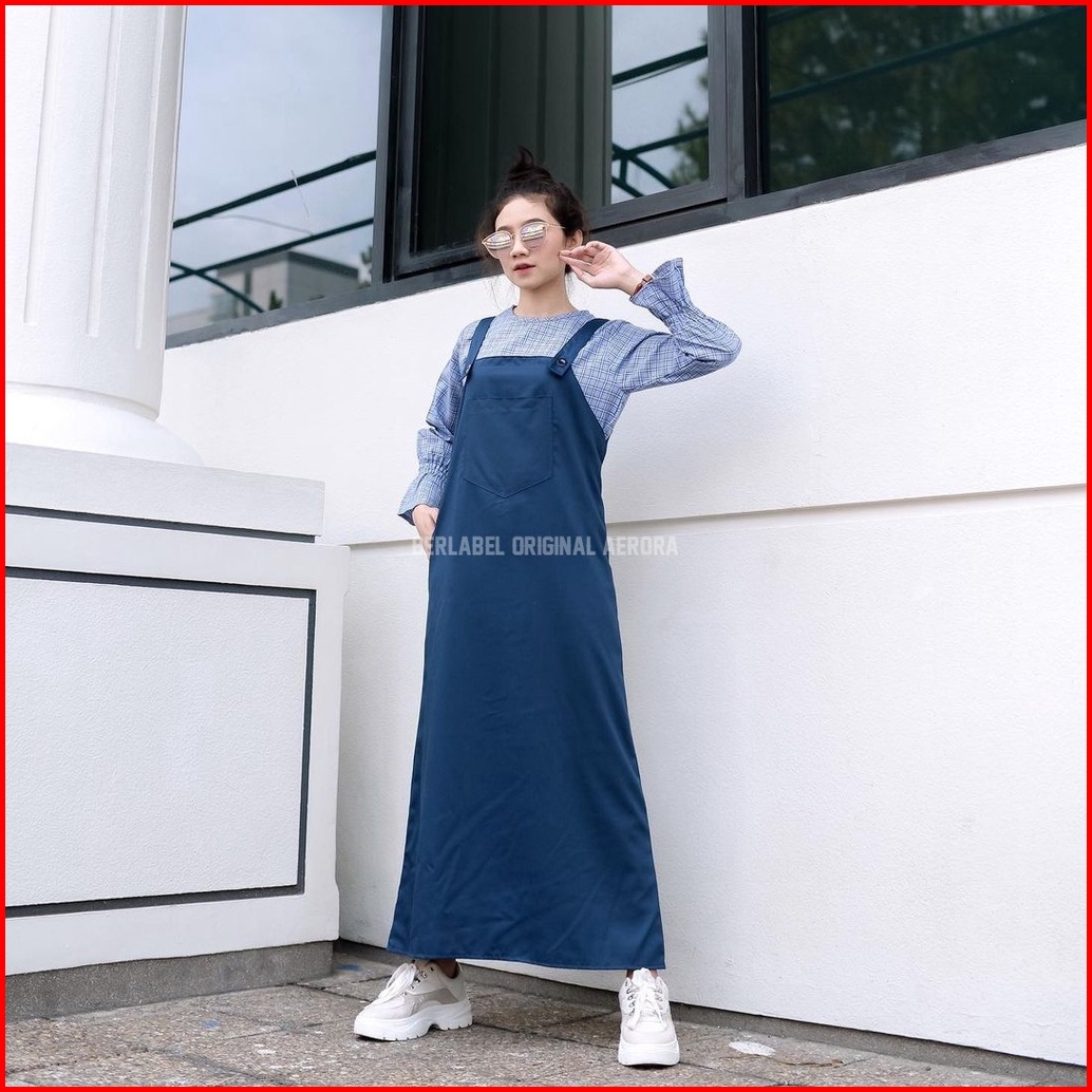 Aerora Baju Kodok Anya Overall Overal Rok Panjang Wanita Motif Polos Premium Terbaru 2025 Simpel