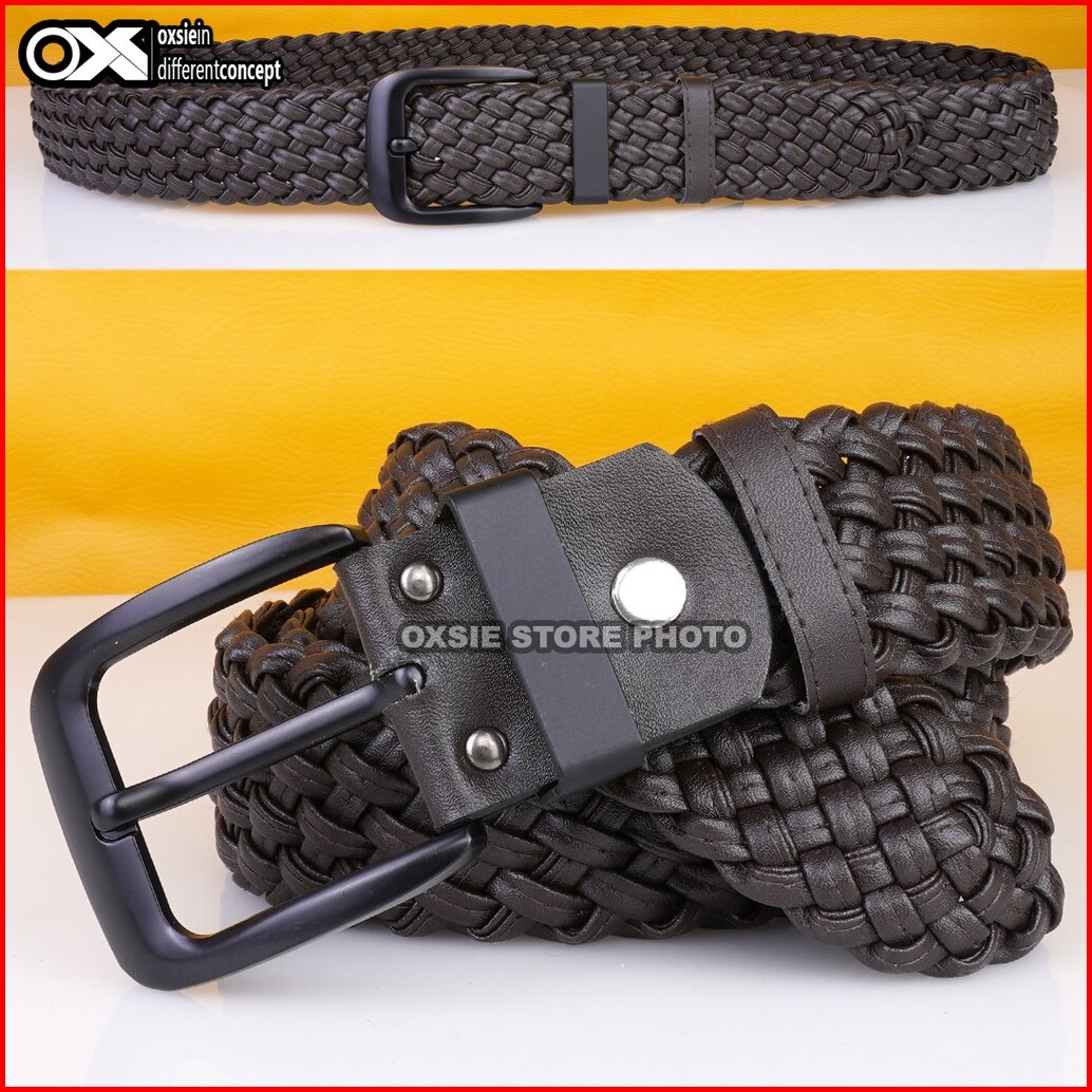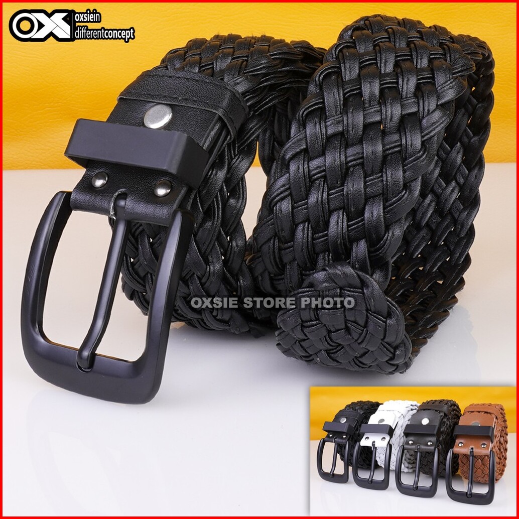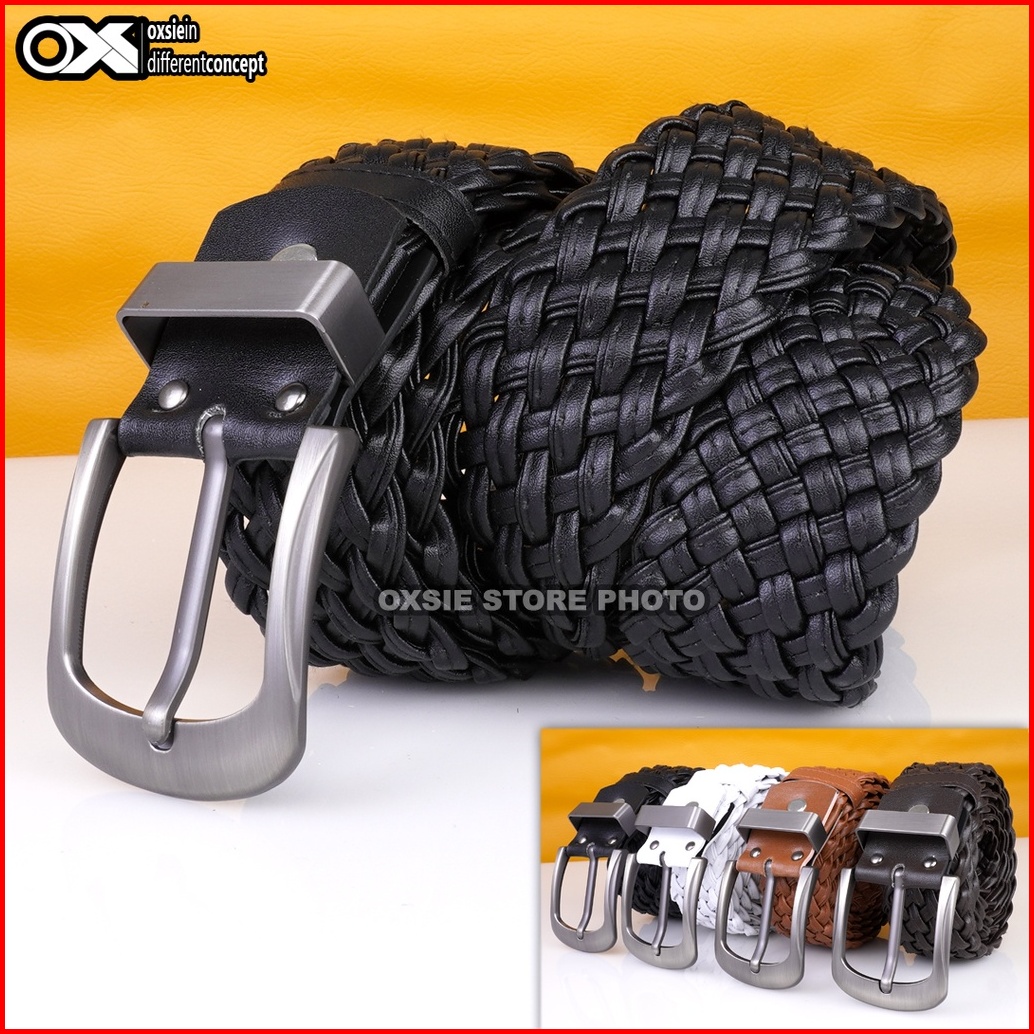 Ikat Pinggang Kulit Pria Dan Wanita Gesper Rajut Belt Strap Kepang Anyam Lebar 4cm 001