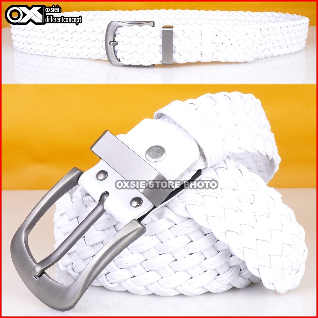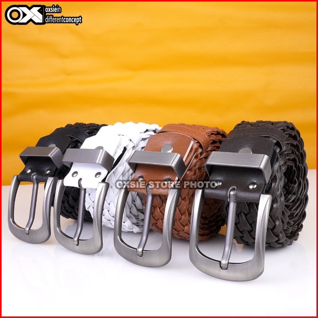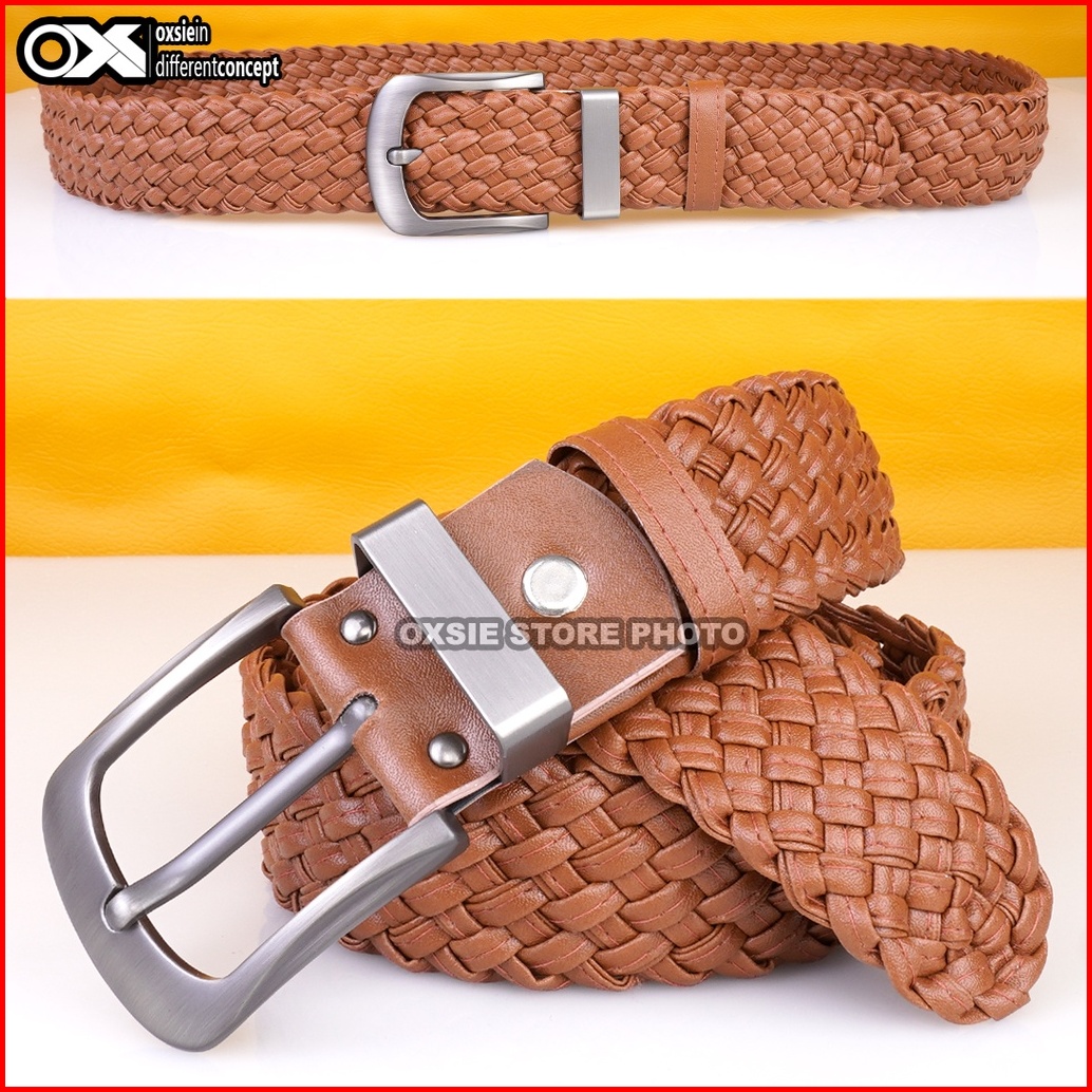 Ikat Pinggang Kulit Pria Dan Wanita Gesper Rajut Belt Strap Kepang Anyam Lebar 4cm 001
