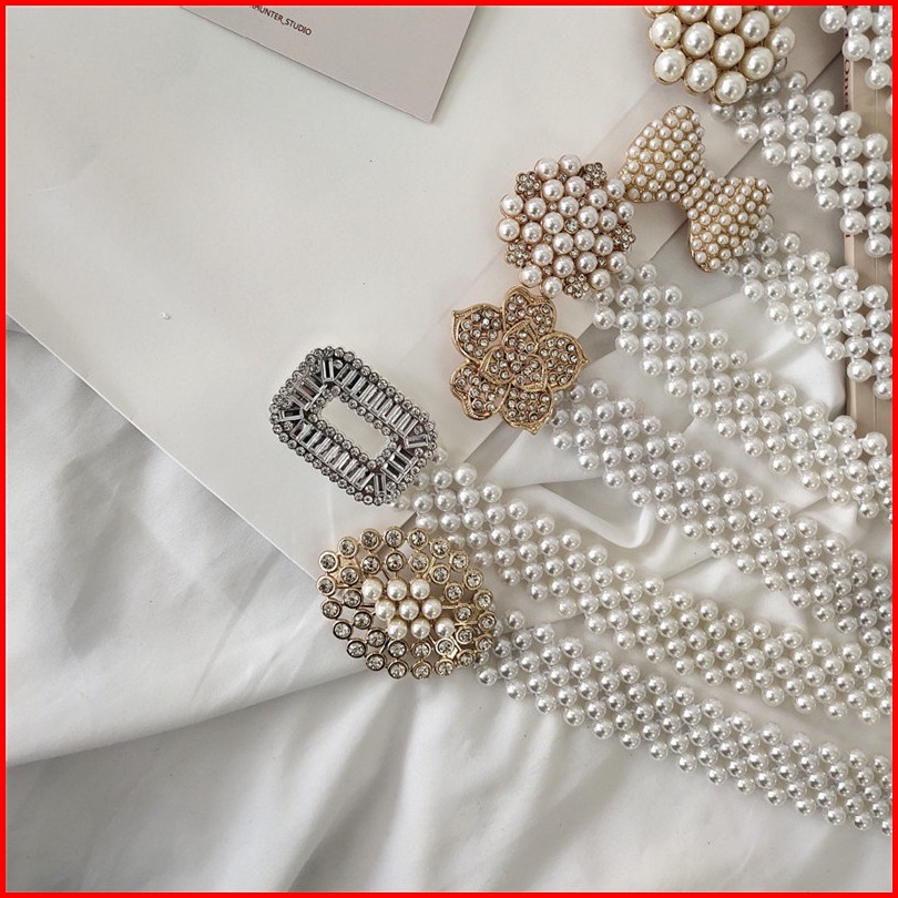 Bgs-145 Gesper Mutiara Wanita Murah Full Mutiara Wanita Pinggang Elastis Terbaru Dan Termurah Gesper Sabuk Gaun