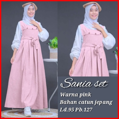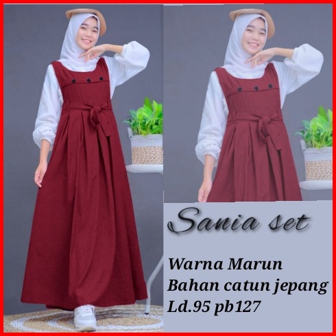 Saniakids Gamis Katun Anak Remaja Tanggung Perempuan Islami Putih Maroon Grey Navy Pink Dusty......
