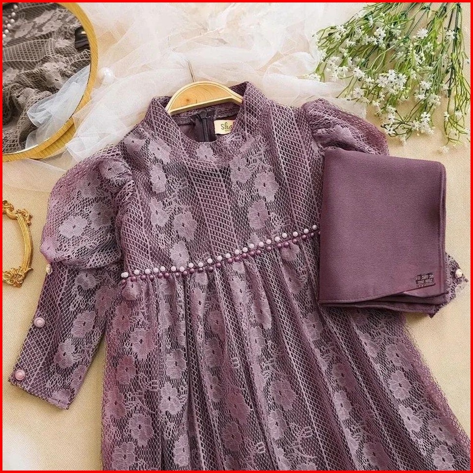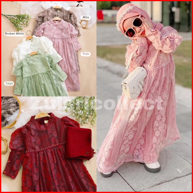 Gamis Pesta Anak Terbaru Gamis Brukat Malika Tanpa Hijab Terbaru Anak Usia 6 Bulan-10 Tahun Kekinian