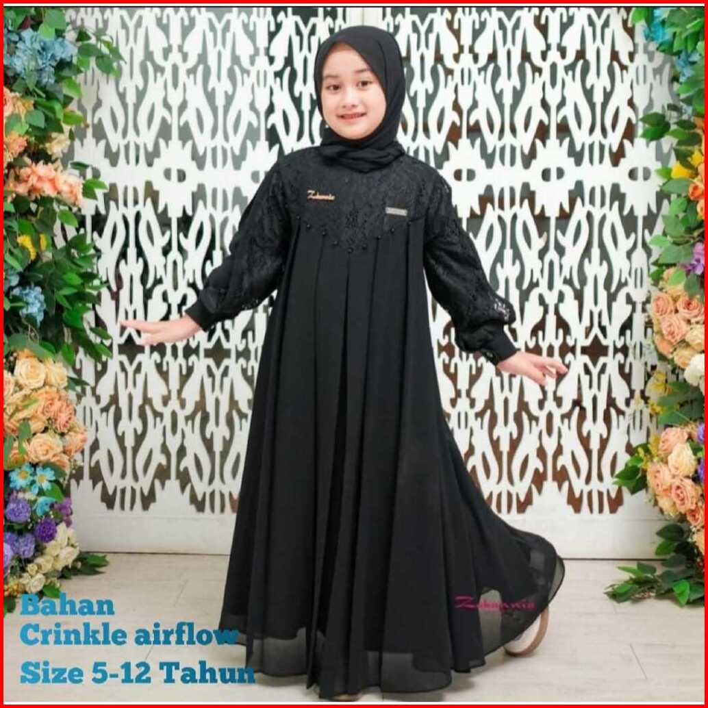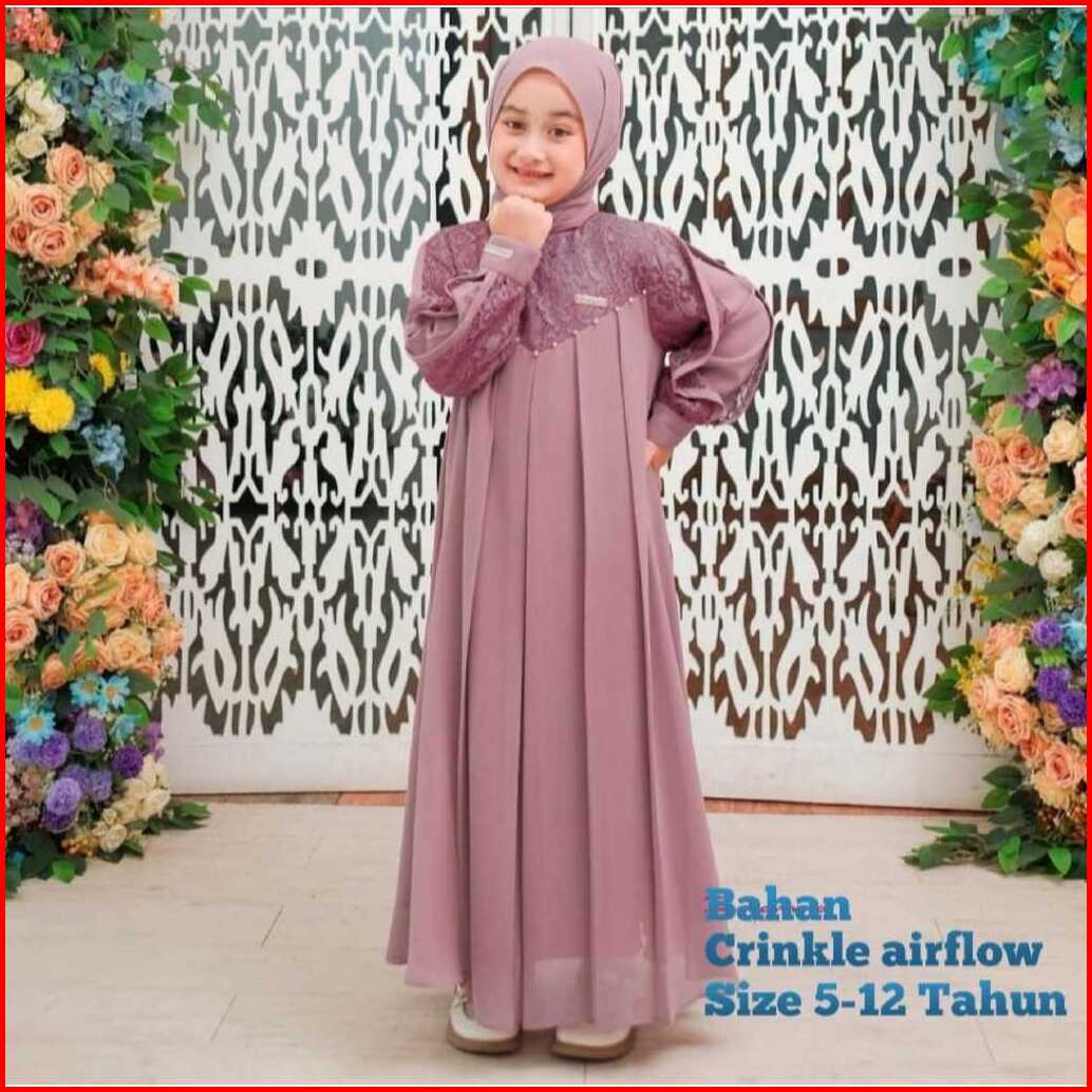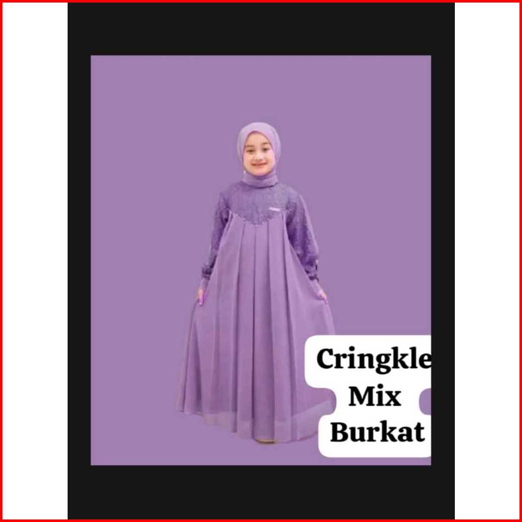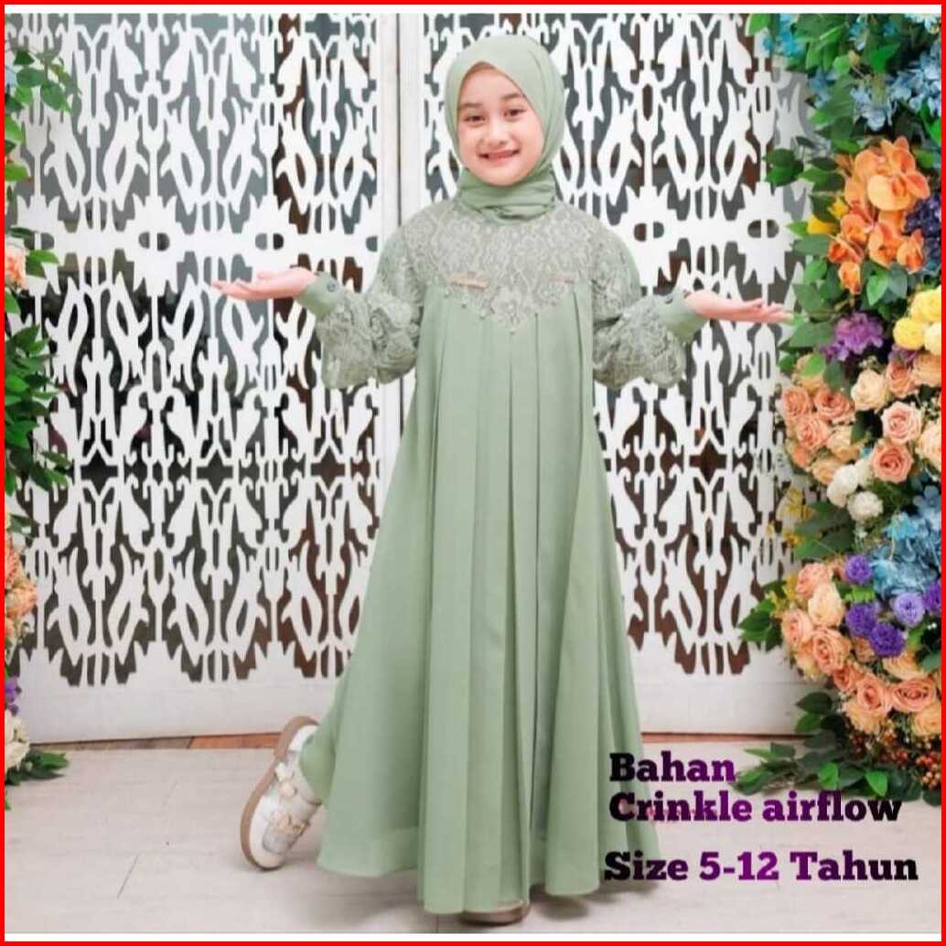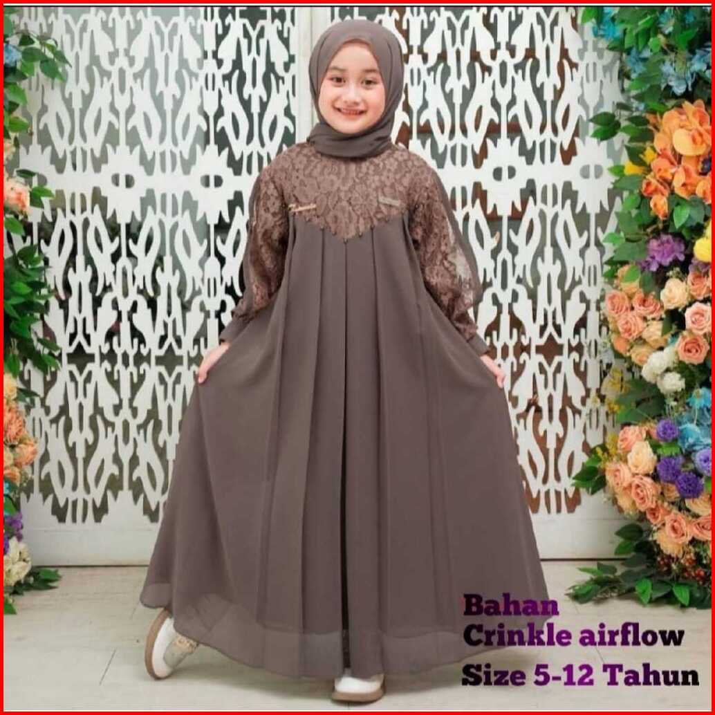 Gamis Crinkle Anak Perempuan Usia 5-12 Tahun Gamis Crinkle Mix Brukat