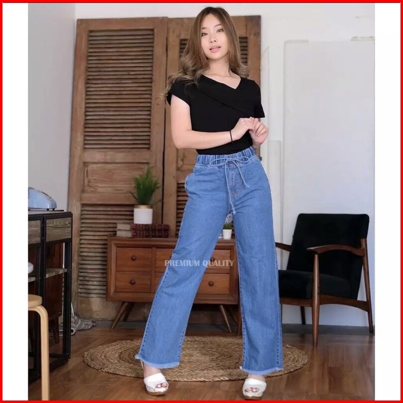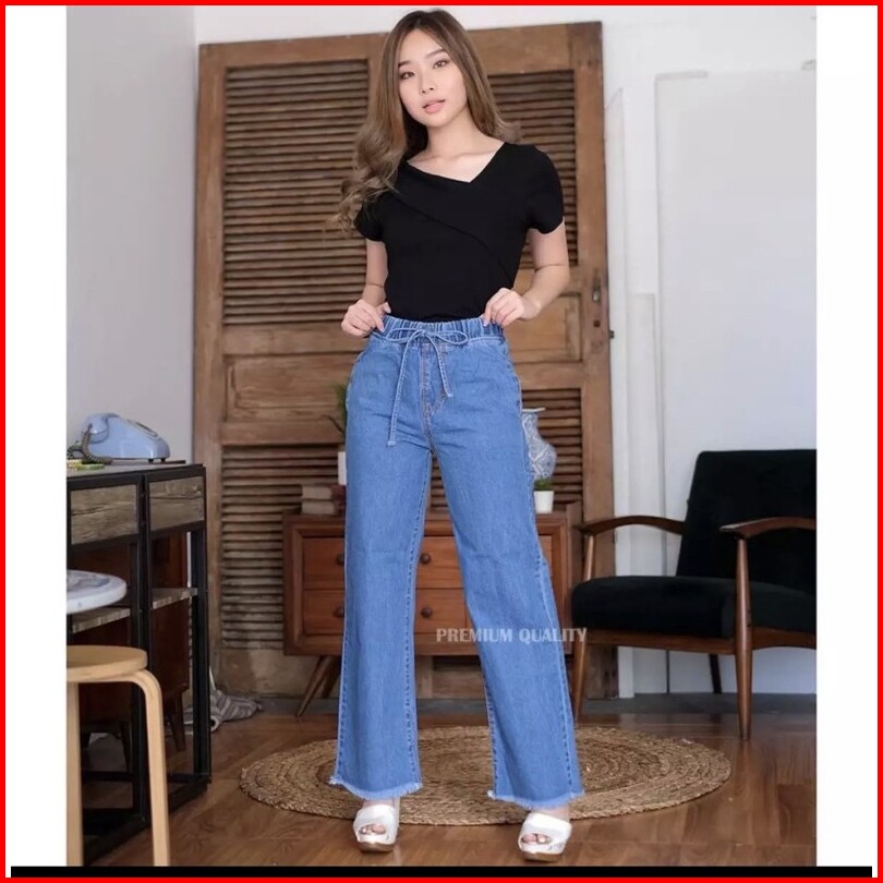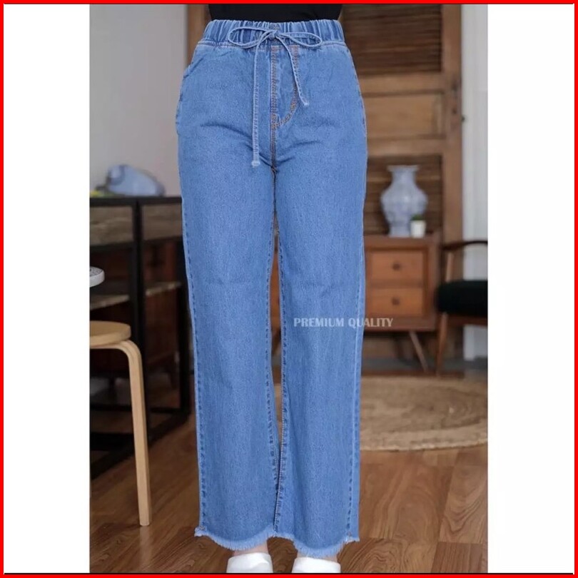 Kulot Jeans Pinggang Karet Rawis Rubber Cullotes