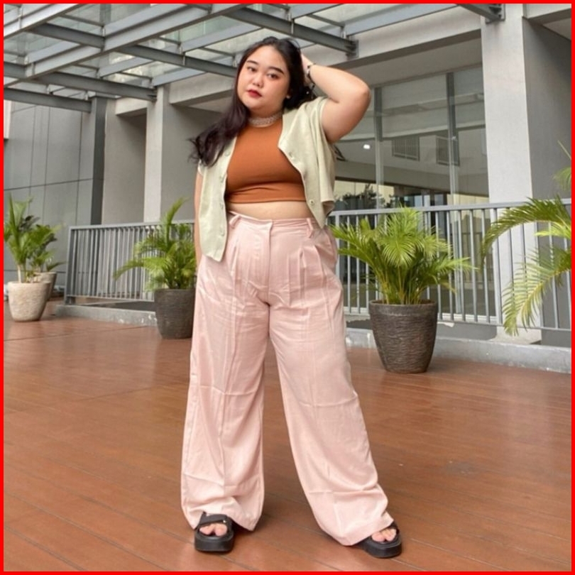 Loose Pants Trousers Jumbo Big Size Highwaist Wanita Anti Kusut - Celana Kulot Highwaist Wanita Bahan Jatuh Celana Kanto