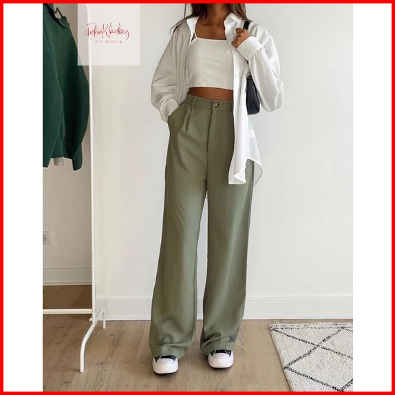 Tukuklambiy Loose Pants Trousers Celana Wanita Formal Kulot Highwaist