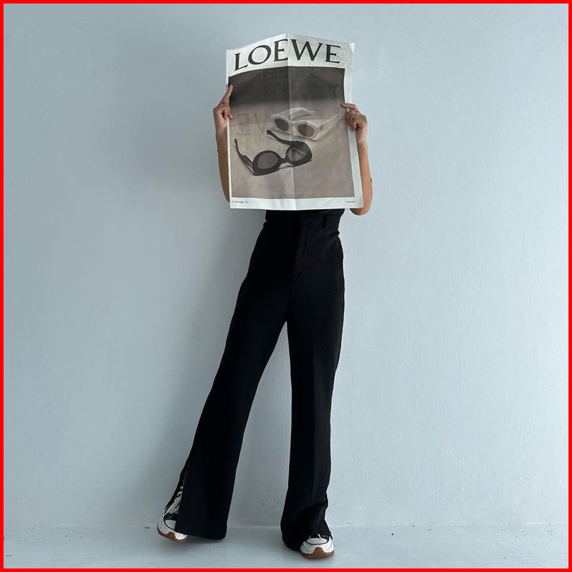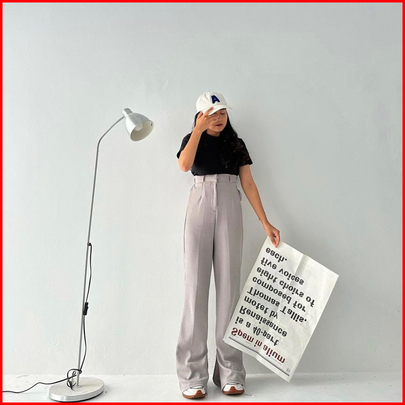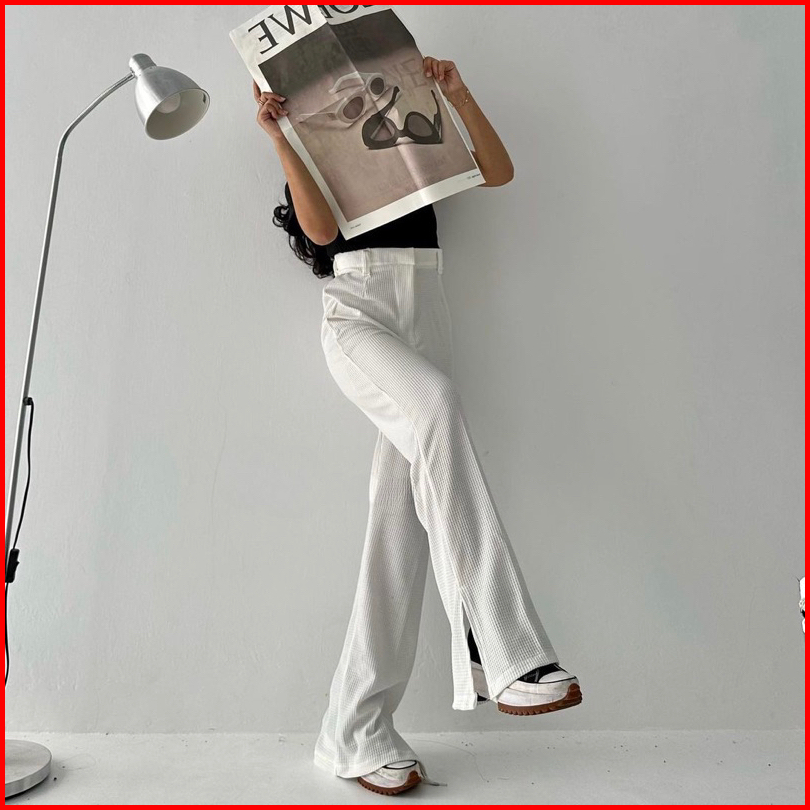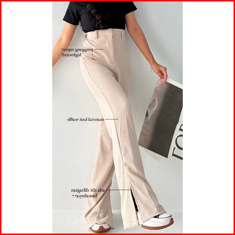 Womscloth - Celana Knit Waffle Slit - Celana Kulot Knit Rib Panjang - Knit Pants - Loose Pants Highwaist Kulot Panjang B