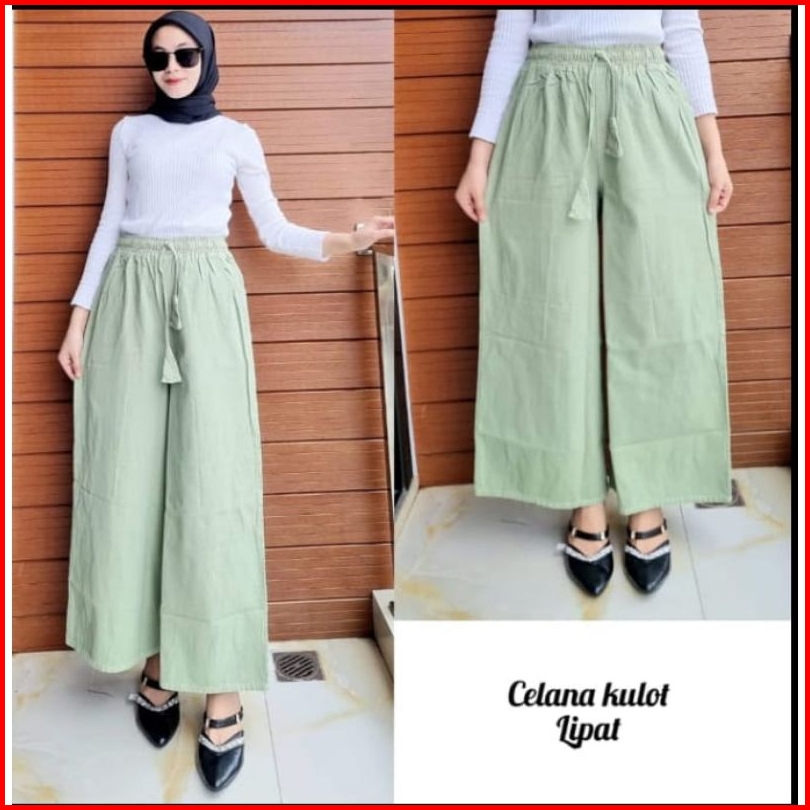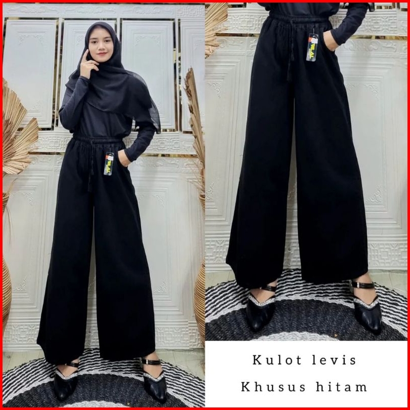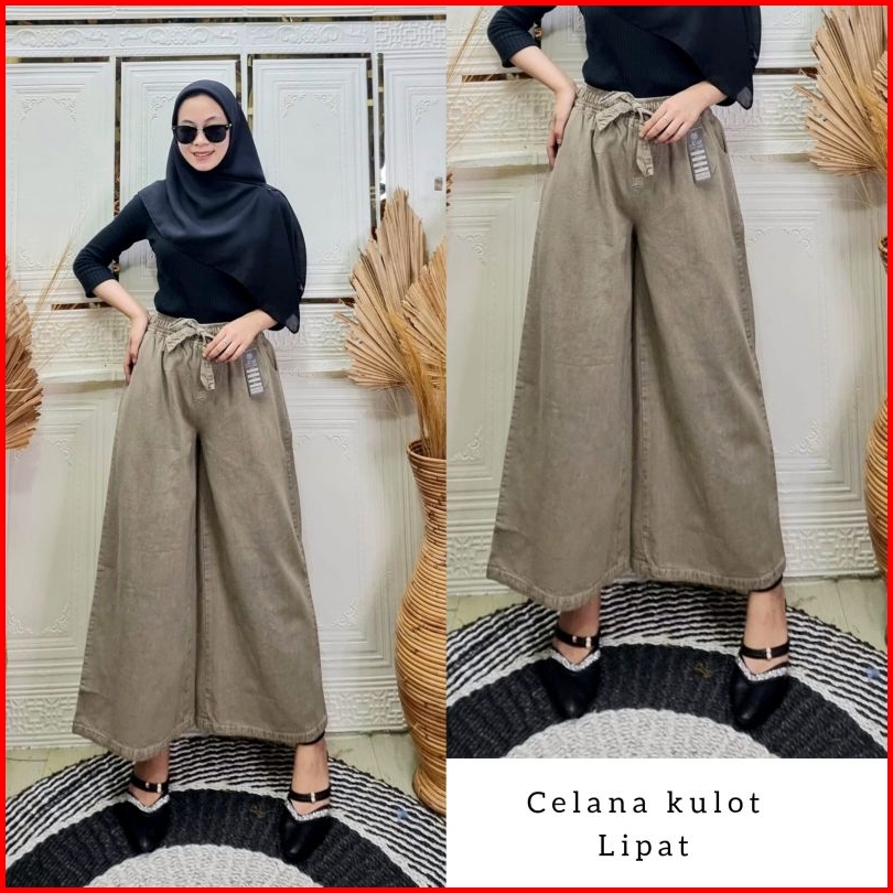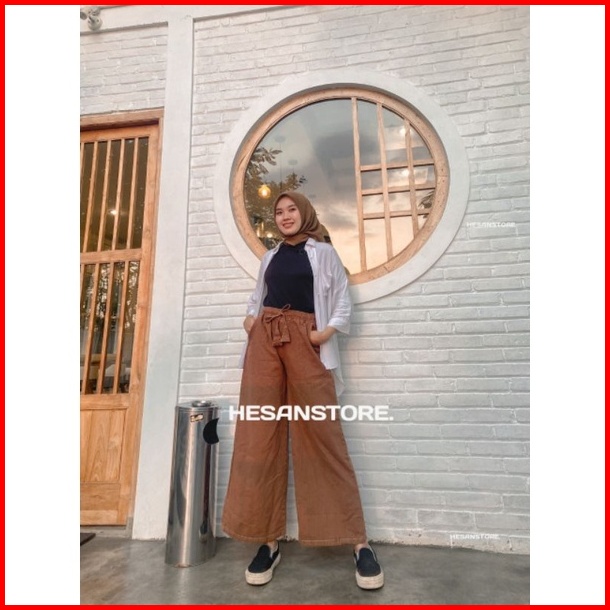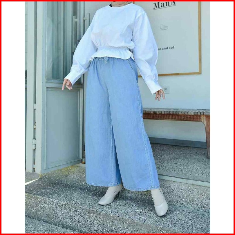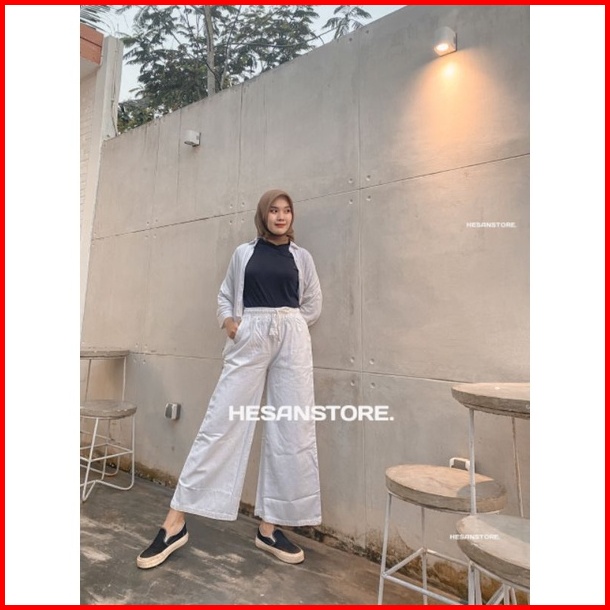 Kulot Jeans Putih Pinggang Full Karet - Kulot Warna Hitam Putih Cream Coklat Kulot Mozza Pinggang Karet