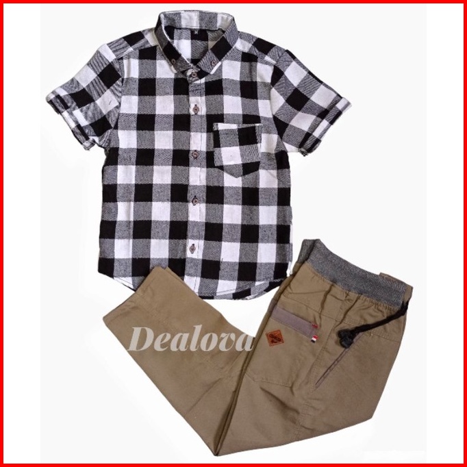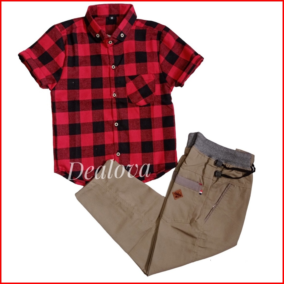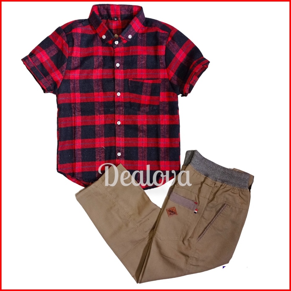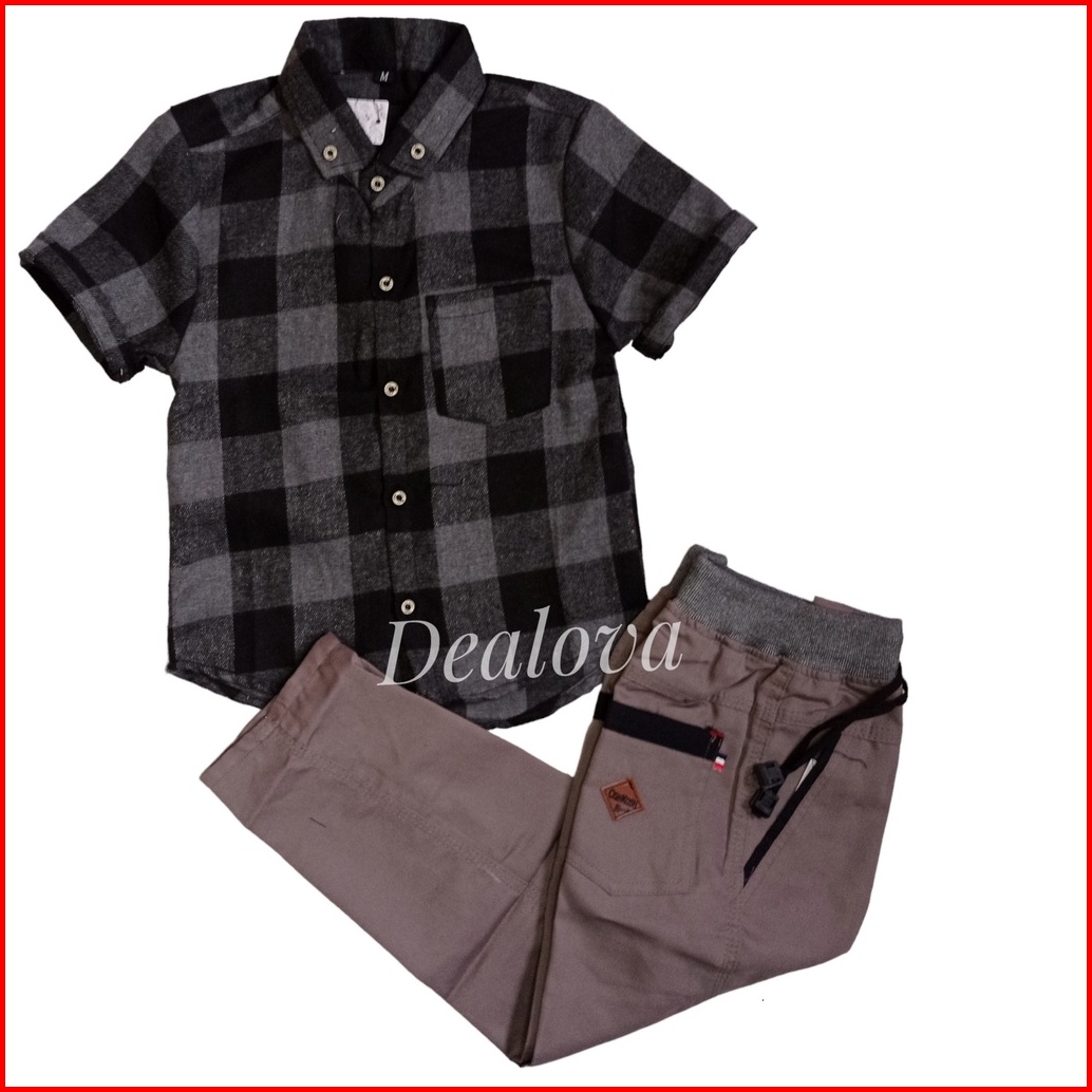 Setelan Anak Kemeja Pendek Flanel 3-8tahun