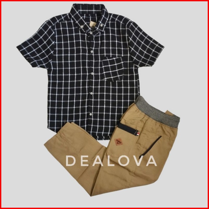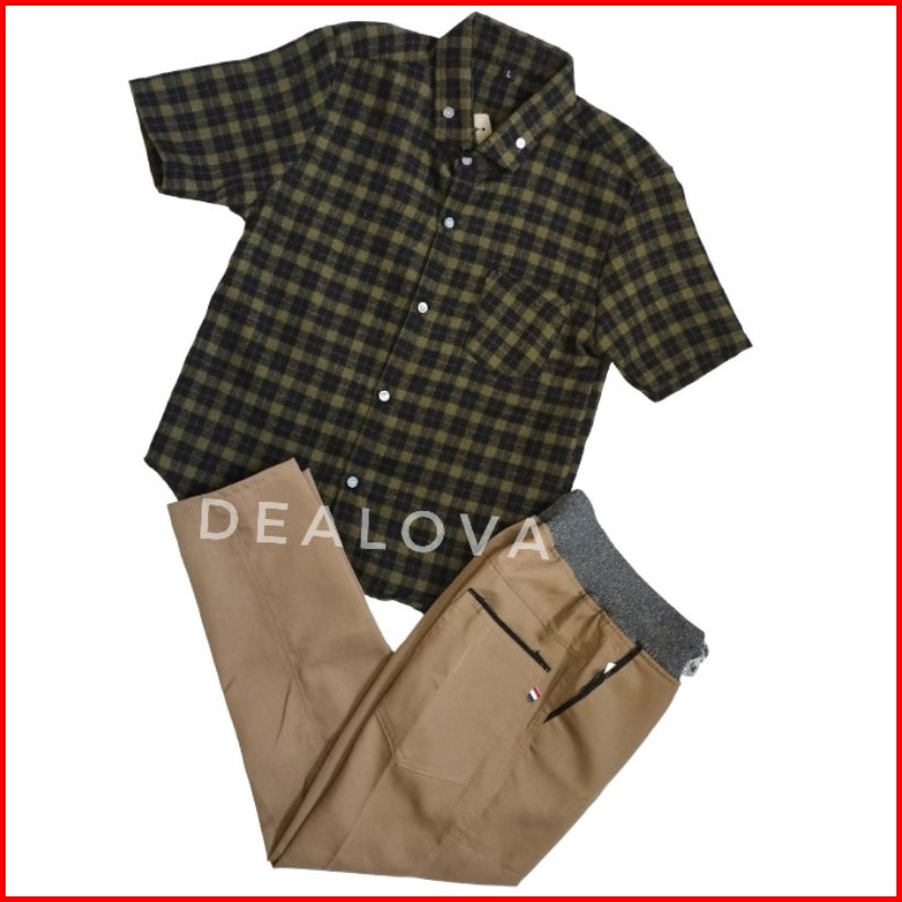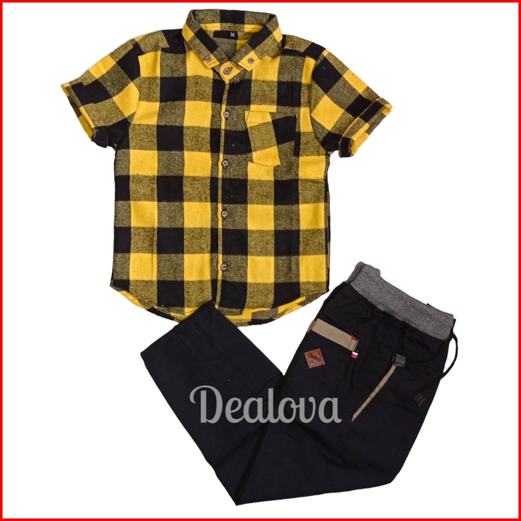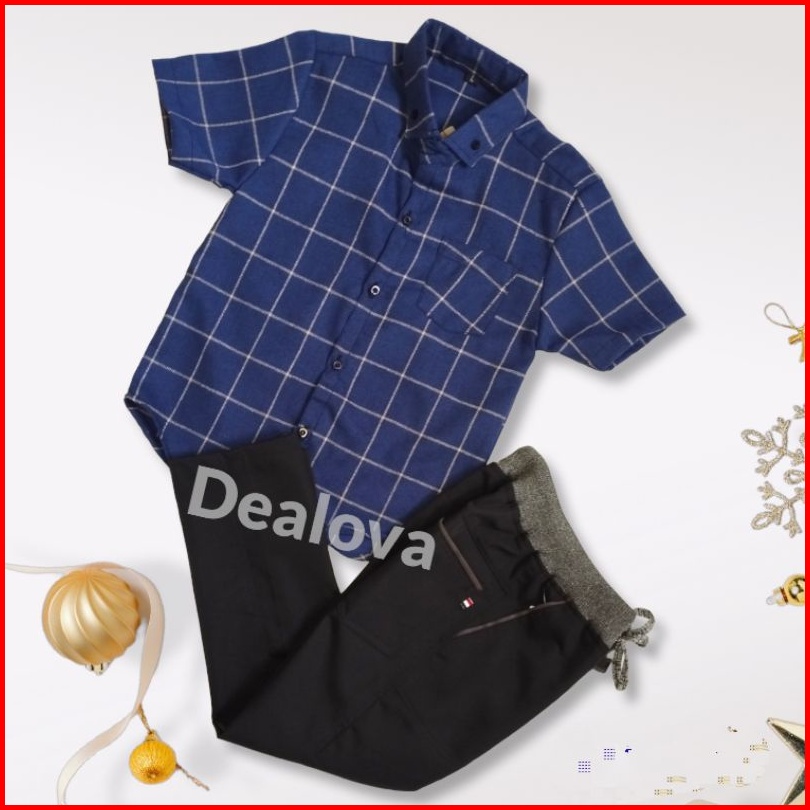 Setelan Anak Kemeja Pendek Flanel 3-8tahun