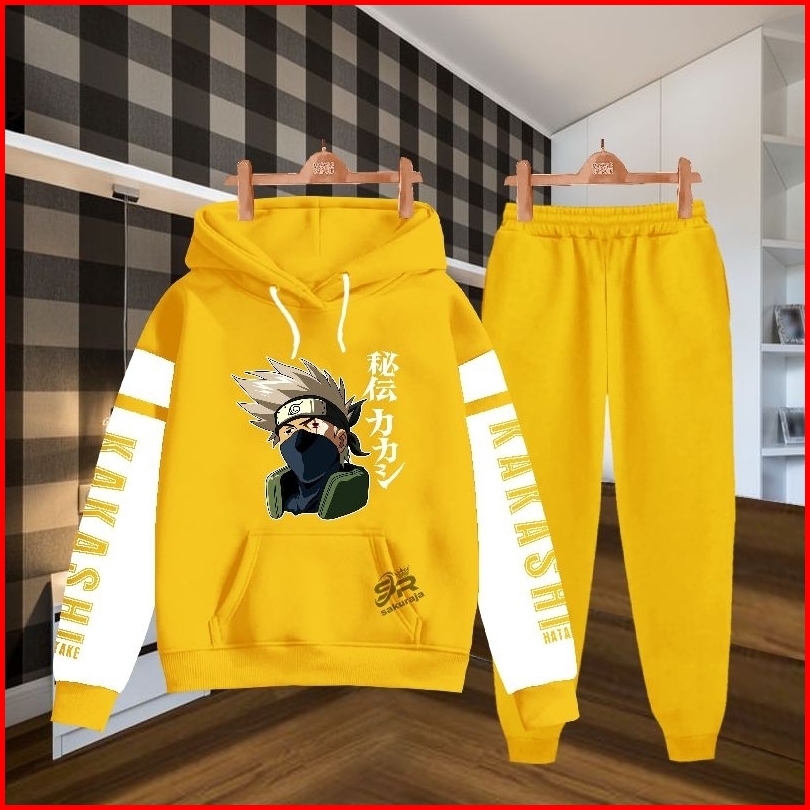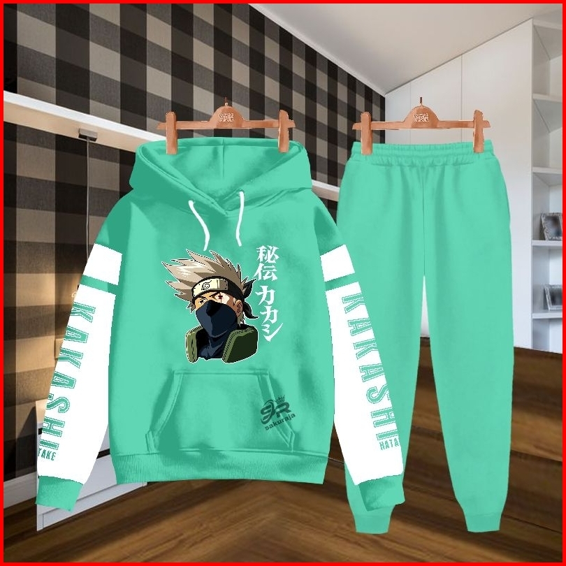 Setelan Hoodie Kombinasi Anak Karakter Kakashi Hatake Umur 6-17 Tahun