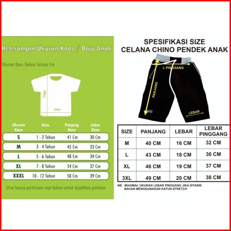M 3-4 thn, L 5-6 thn, XL 7-8 thn, XXL 9-11 thn