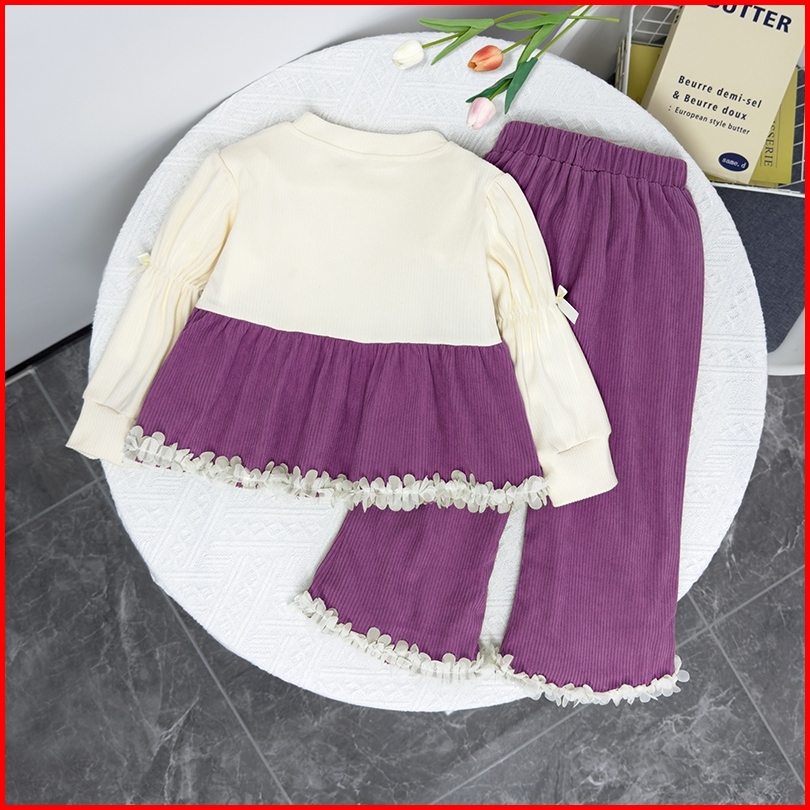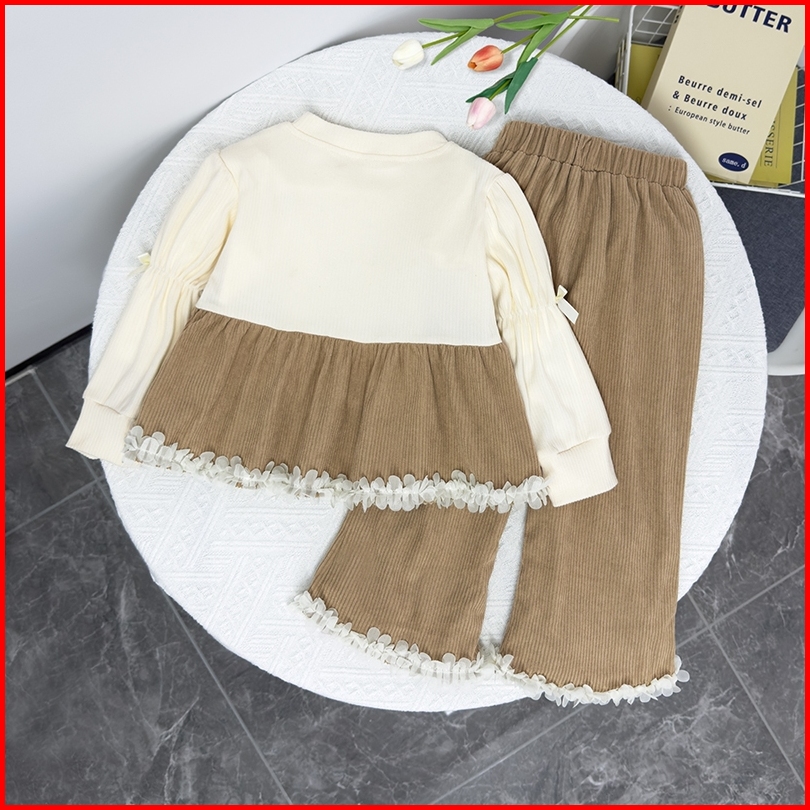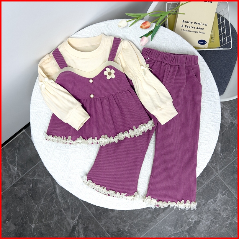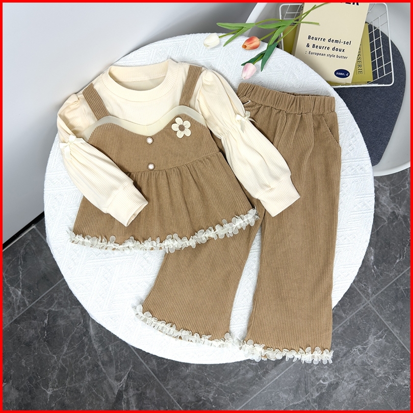 Kf Cat Setelan Anak Perempuan Gaya Korea 3in1 - Atasan Katun Beludru Celana Panjang Usia 1-5 Tahun
