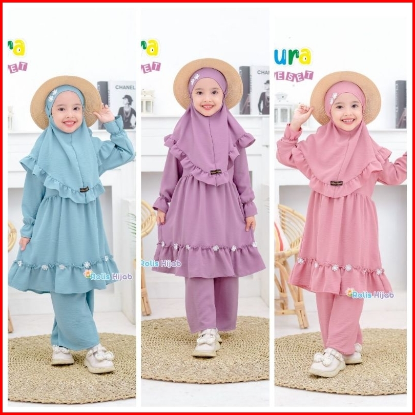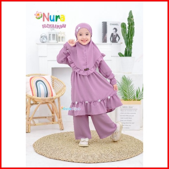 Rolishijab Setelan Muslim Anak Perempuan Tunik Anak Nura Setelan