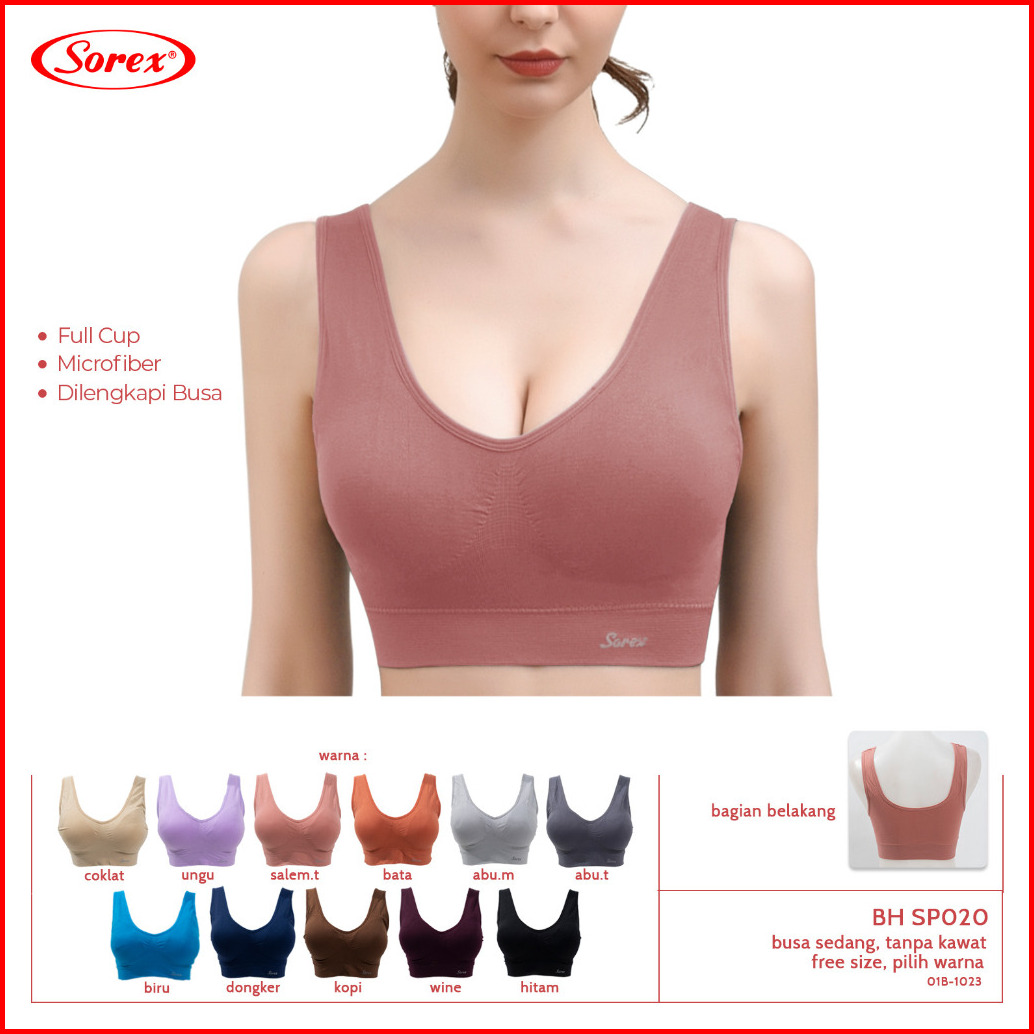 Sorex 020 Sport Bra Bh Wanita Tanpa Kawat Busa Cup Besar Olahraga Stretch
