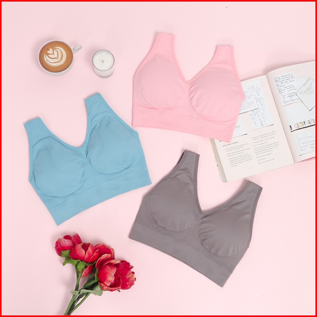 Genie Bra Wanita Tanpa Kawat Isi 3 Pcs Bh Sport Push Up Busa Tanpa Tali Jumbo Sexy Menyusui Beha Remaja Kutang Pastel
