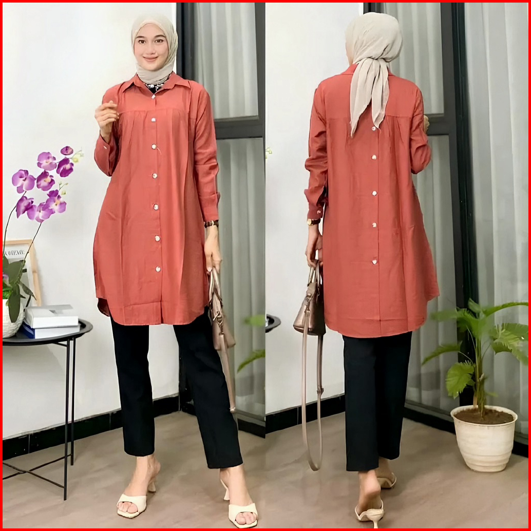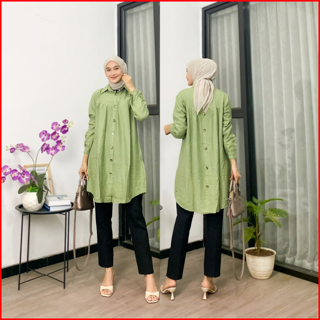 Adel Longtunik Pololinen Tunik Panjang Atasan Wanita Muslimah Termurah Btcsolo Polo Linen