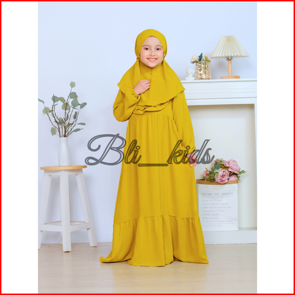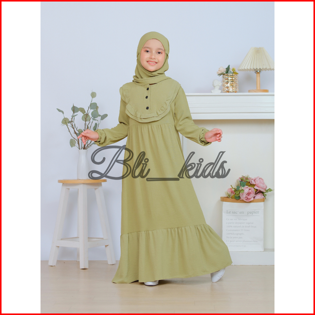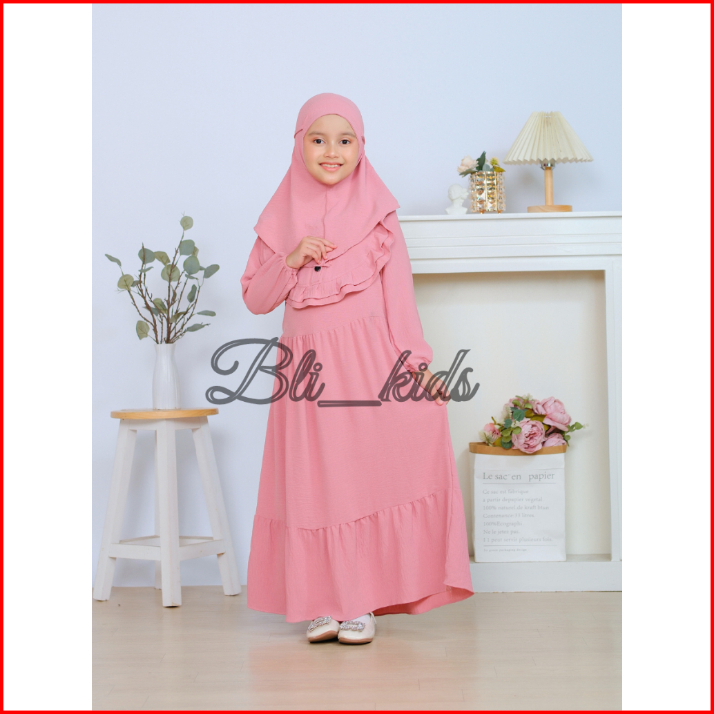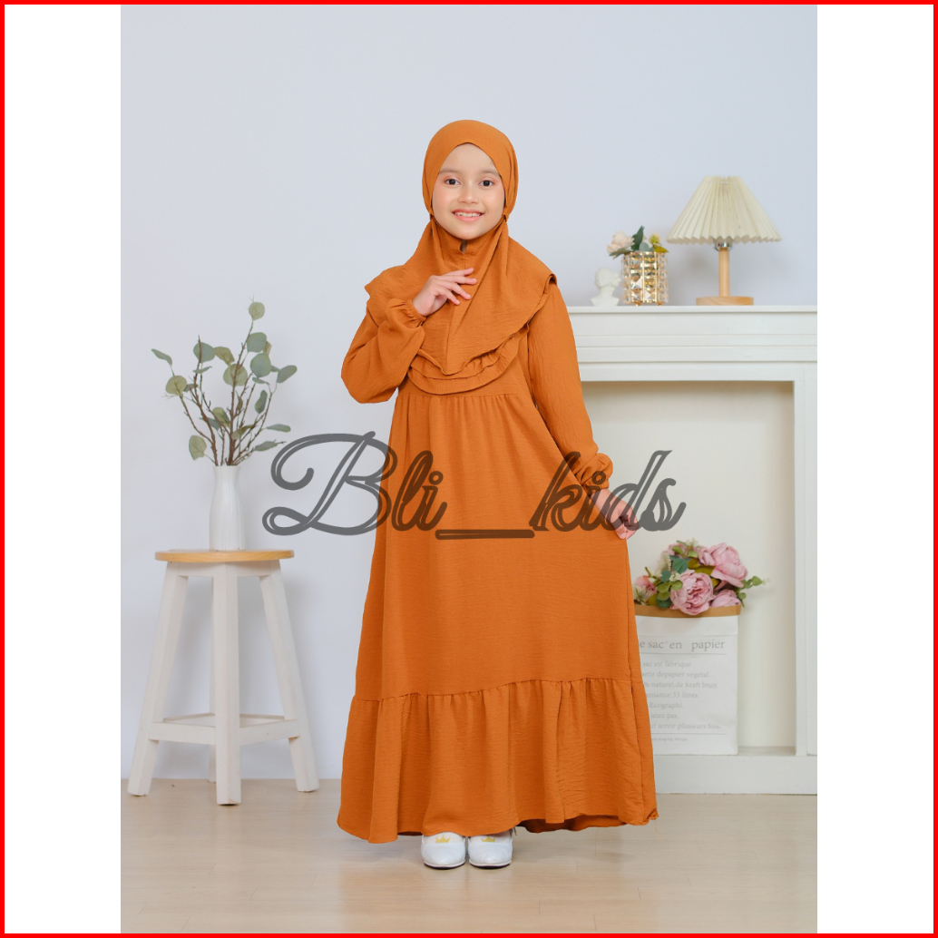 Gamis Anak Perempuan Terbaru Bahan Crinkle Premium Airflo Free Kerudung Usia 3 Sampai 12 Tahun