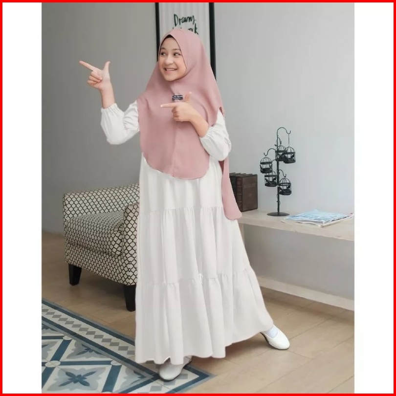Gamis Anak Usia 8 - 13 Th Polos Perempuan Midi Dress Muslim Kids Anak Wanita Bahan Rayon Premium