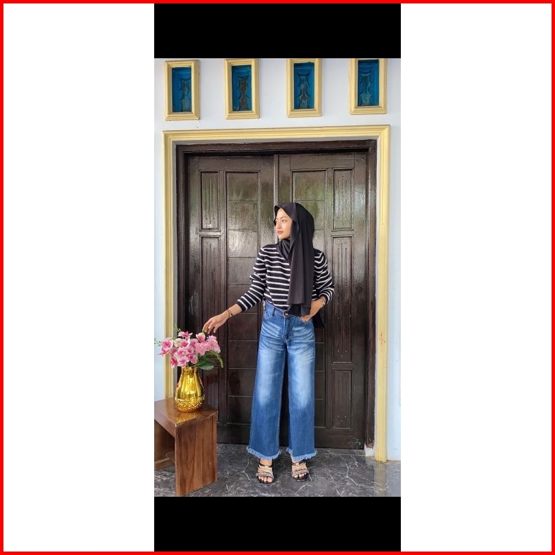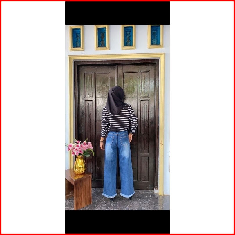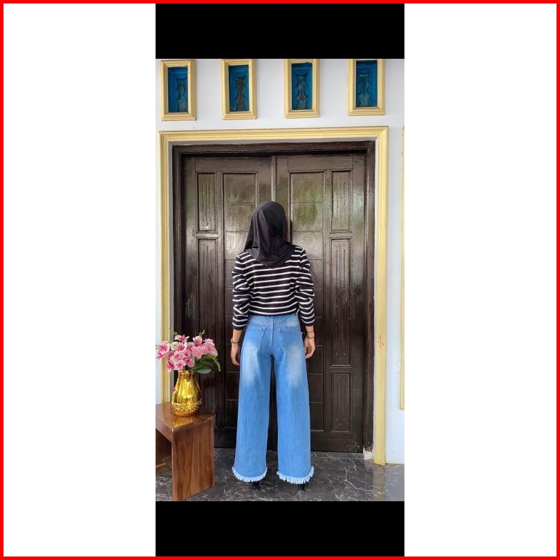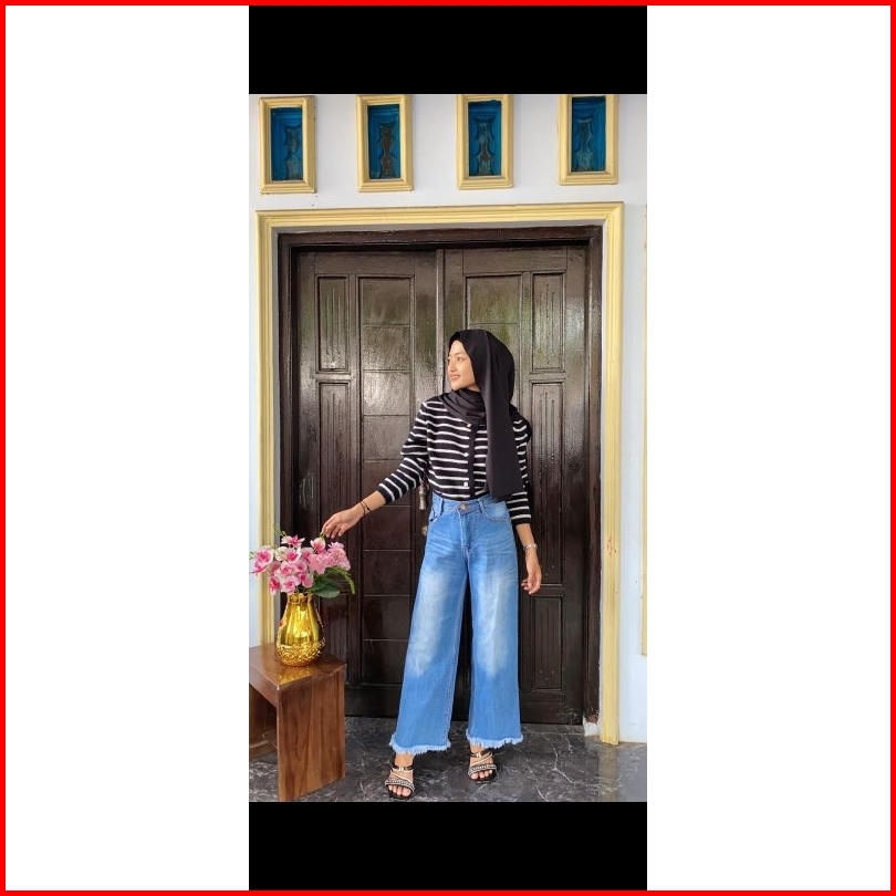Celana Kulot Jeans Rawis Wisker Tebal Premium Kulot Rawis Highwaist Wisker Rawis Wisker Ukuran 27-34
