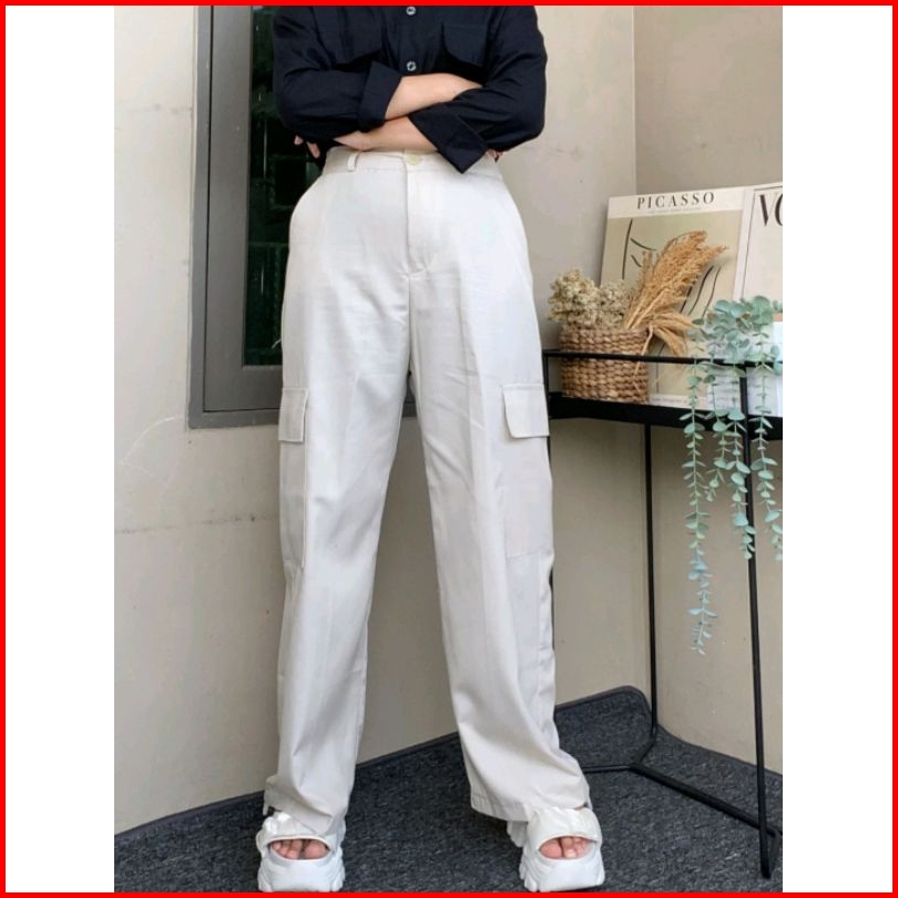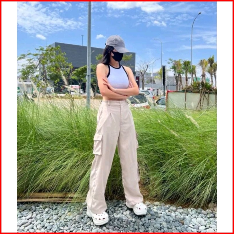 Celana Kulot Cargo Wanita Jumbo Highwaist Cargo Pants Drill