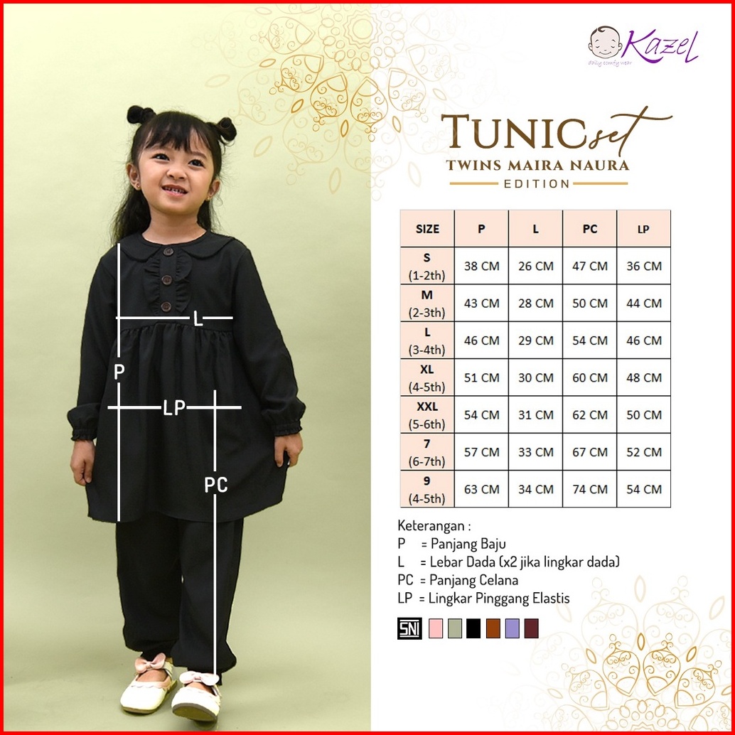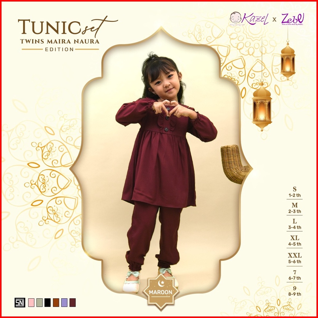 Sale Ambyar Kazel Setelan Tunik 1-10 Tahun Twins Maira Naura Aisyah Tunic Set Edition X Zebe Setelan Tunik Raya Tunik Se