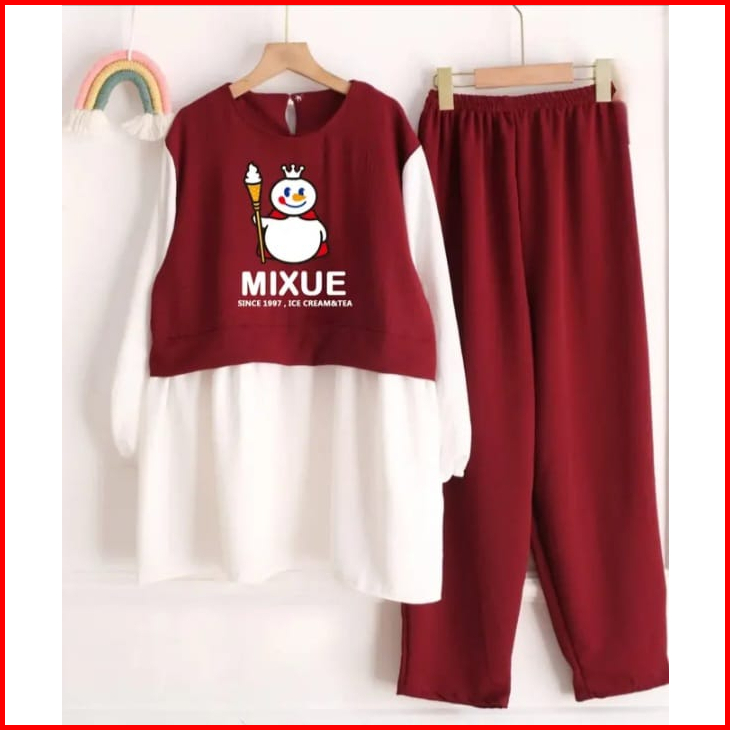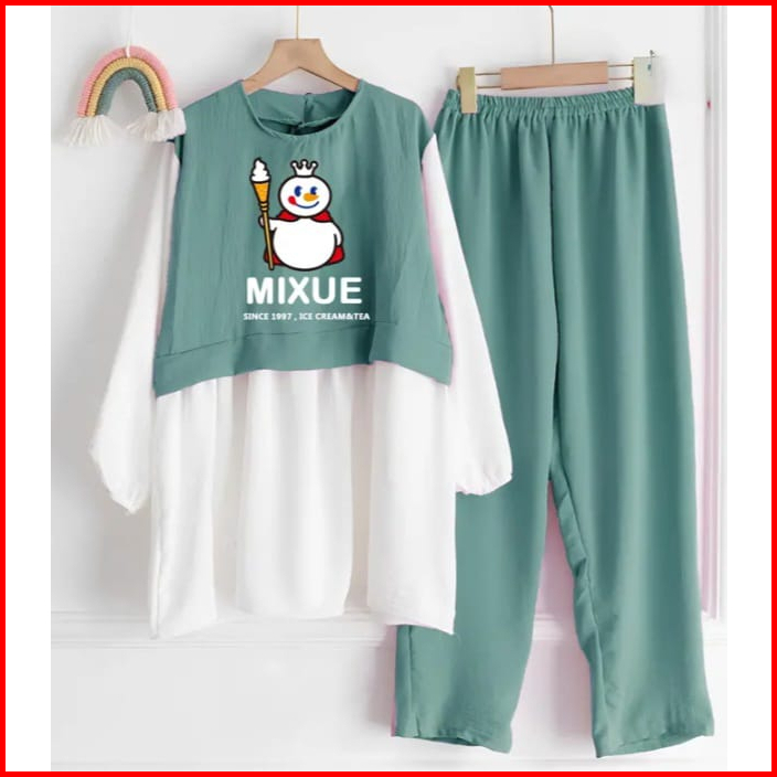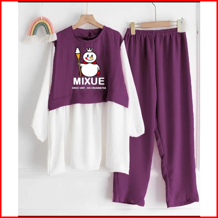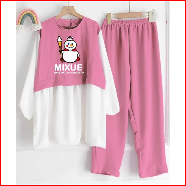 Setelan Anak Perempuan Cringkel Mixue 3-12 Tahun