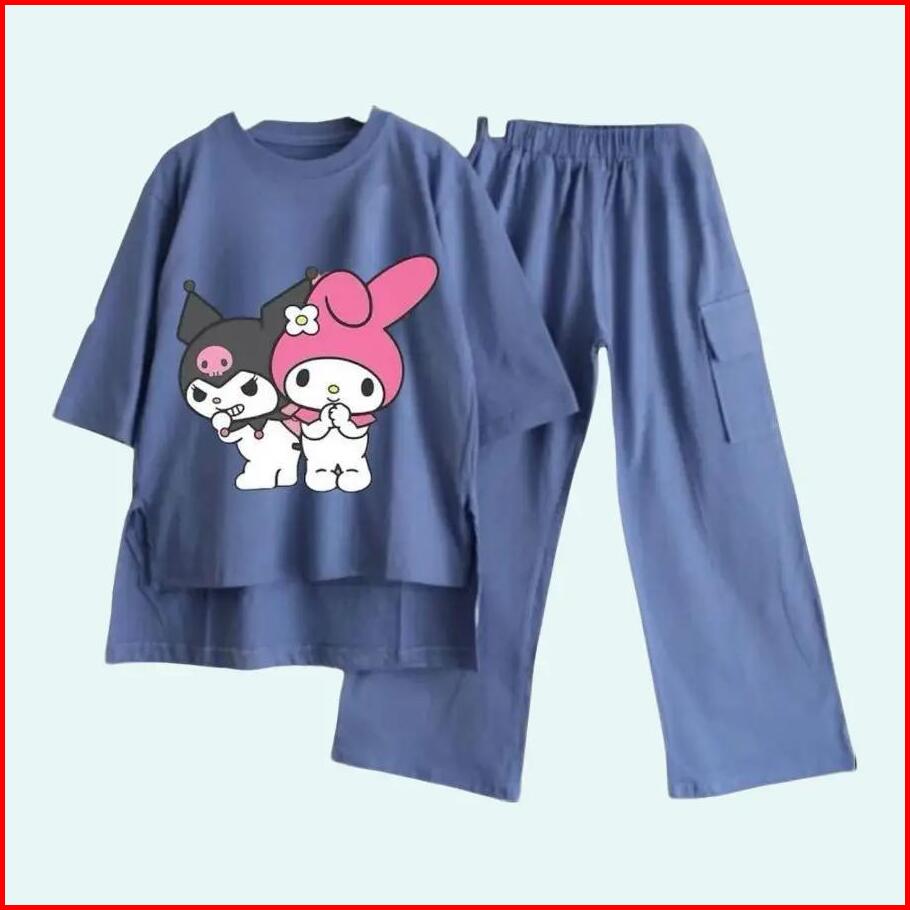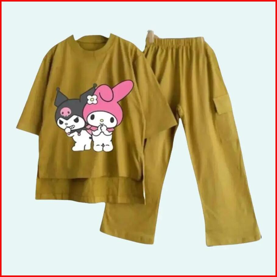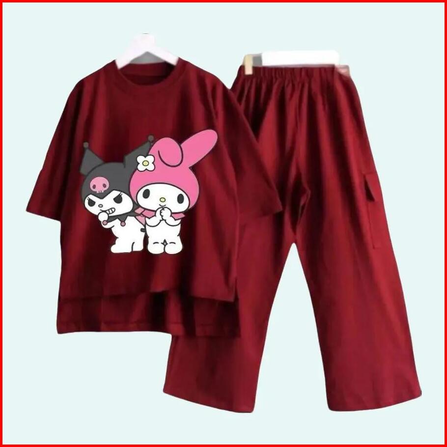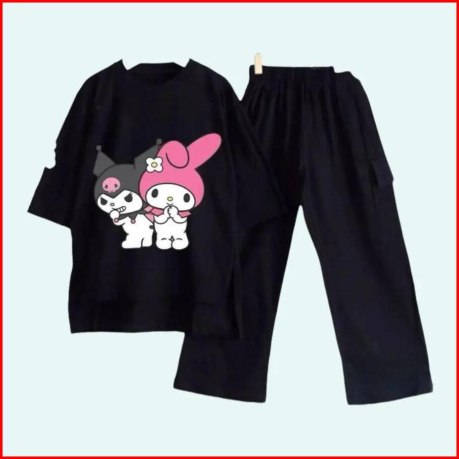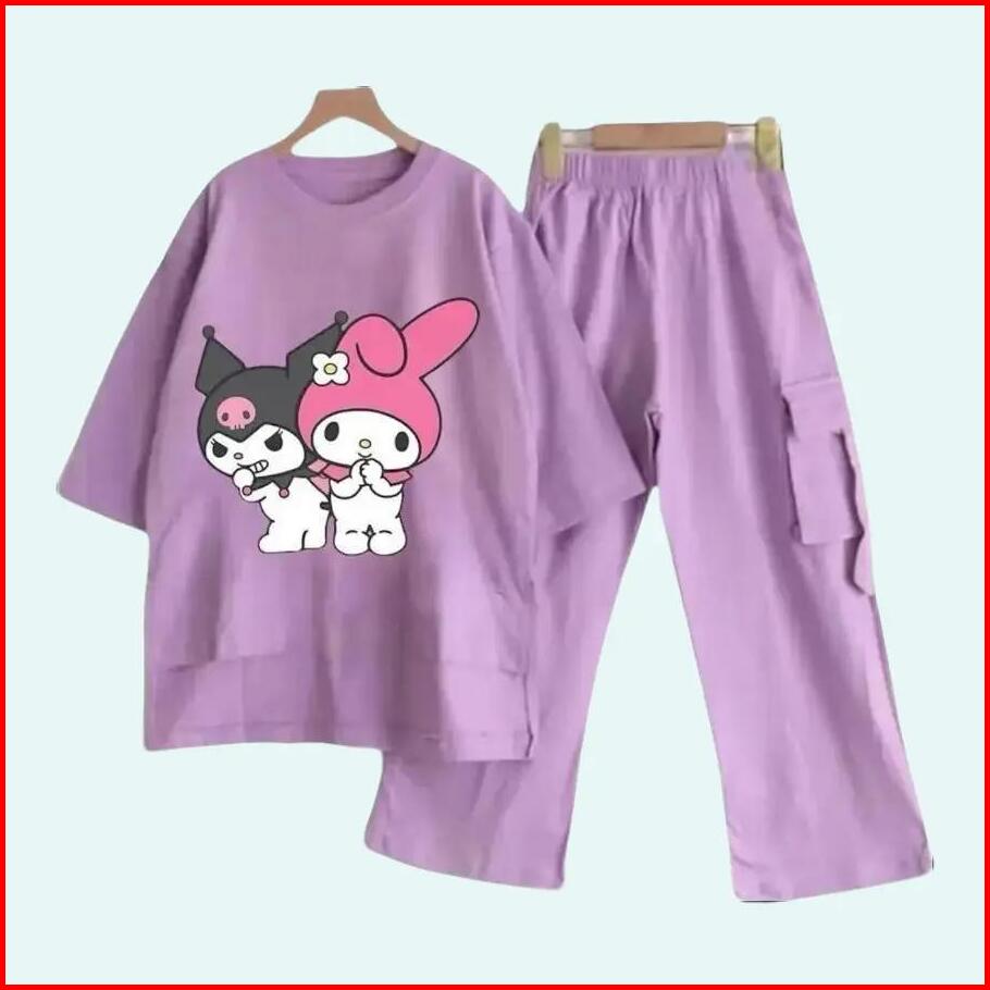 Setelan Anak Prempuan 3-8thn-setcel Kuromi Crinckle Airflow.setelan Anak Terlaris 2024.termurah