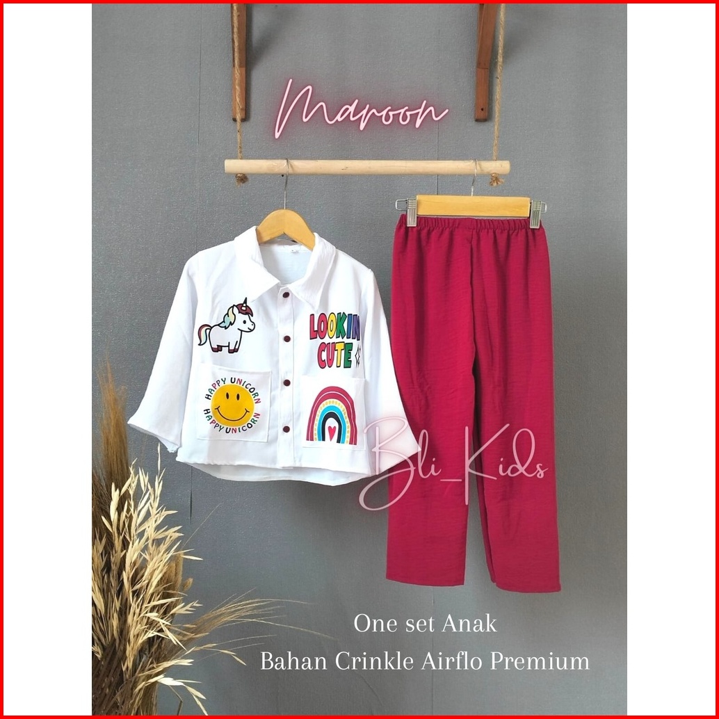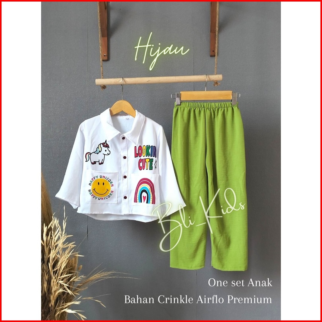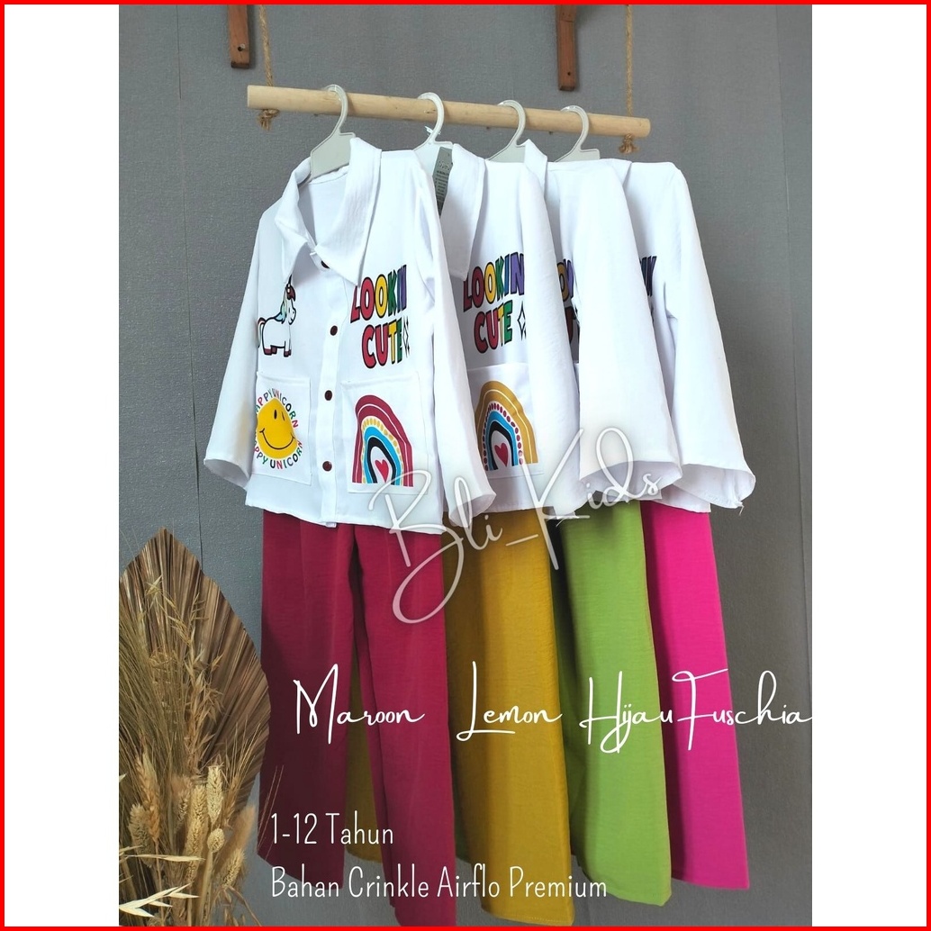 Setelan Kemeja Anak Perempuan Bahan Crinkle Airflo Premium Motif Printing Usia 1 Sampai 12 Tahun
