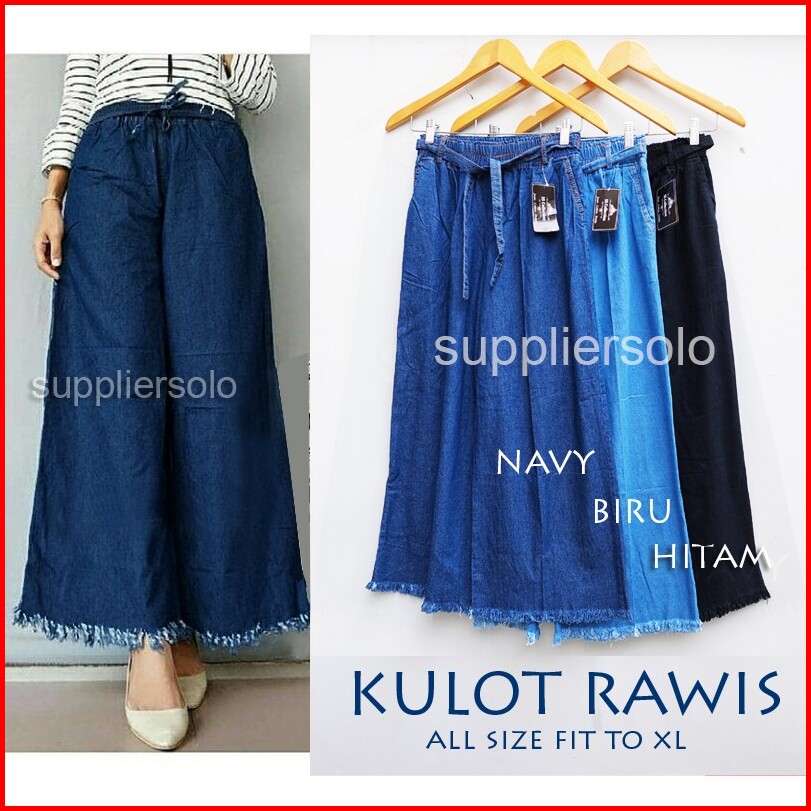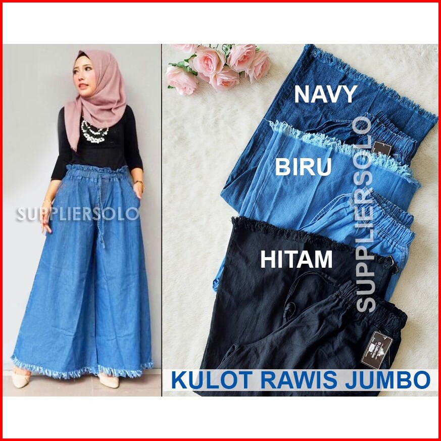 Celana Kulot Rawis Jeans Xl Jumbo Xxxl Navy Biru