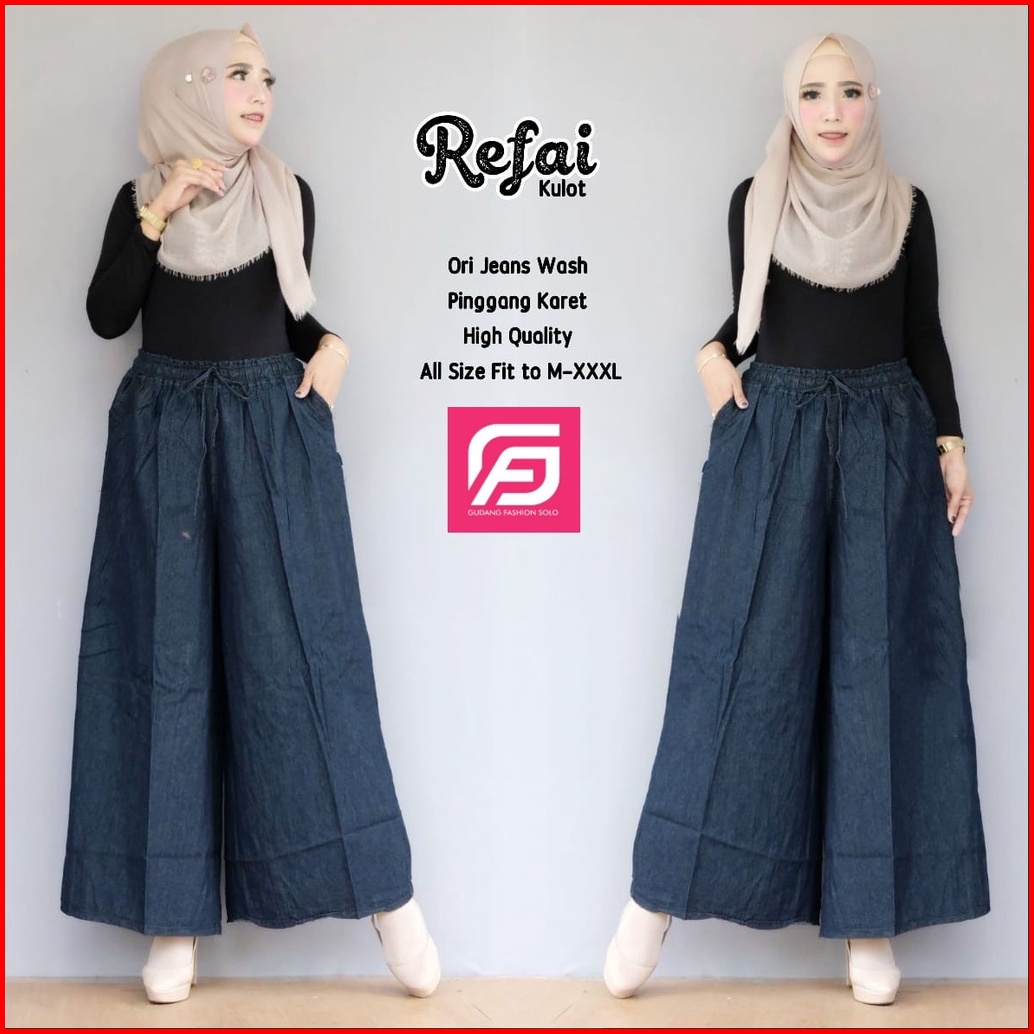 Celana Kulot Wanita - Celana Kulot Jeans - Kulot Wanita Jumbo - Celana Kulot Refai Terbaru