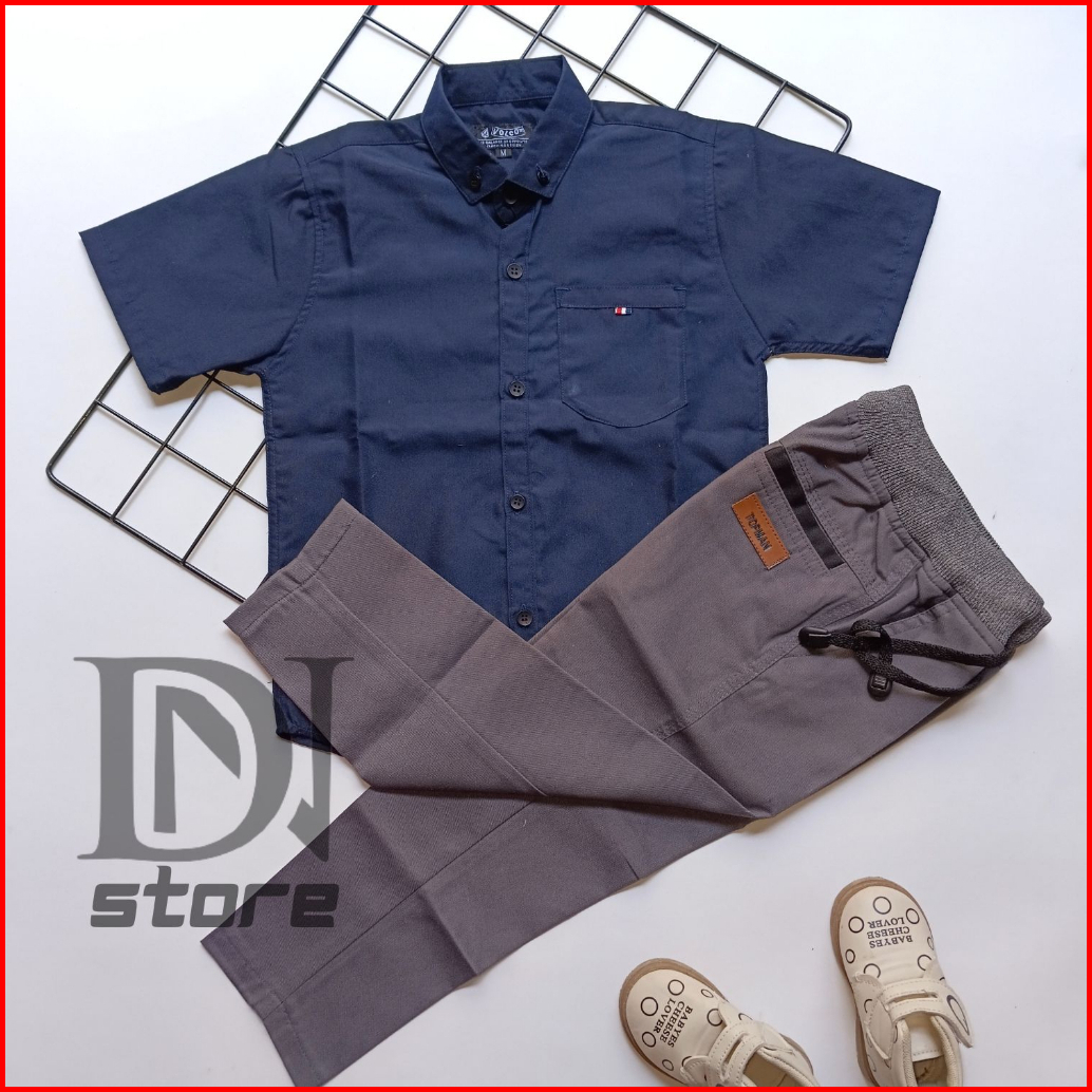 Setelan Kemeja Anak Laki Laki Lengan Pendek Polos Bahan Katun Oxford Poplin Katun Street Premium Quality 3-10 Tahun
