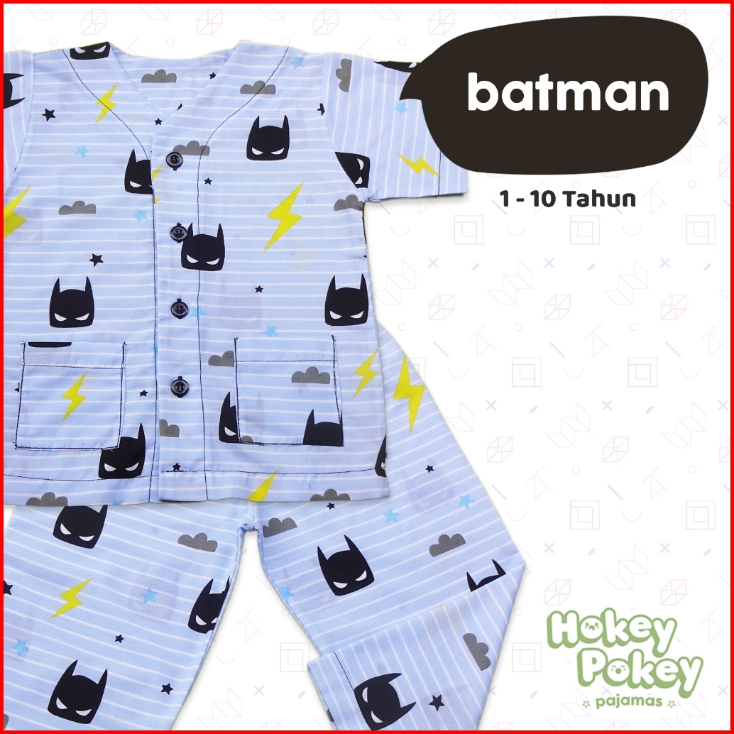 Setelan Baju Tidur Piyama Anak Laki Laki Tanpa Kerah Motif Batman