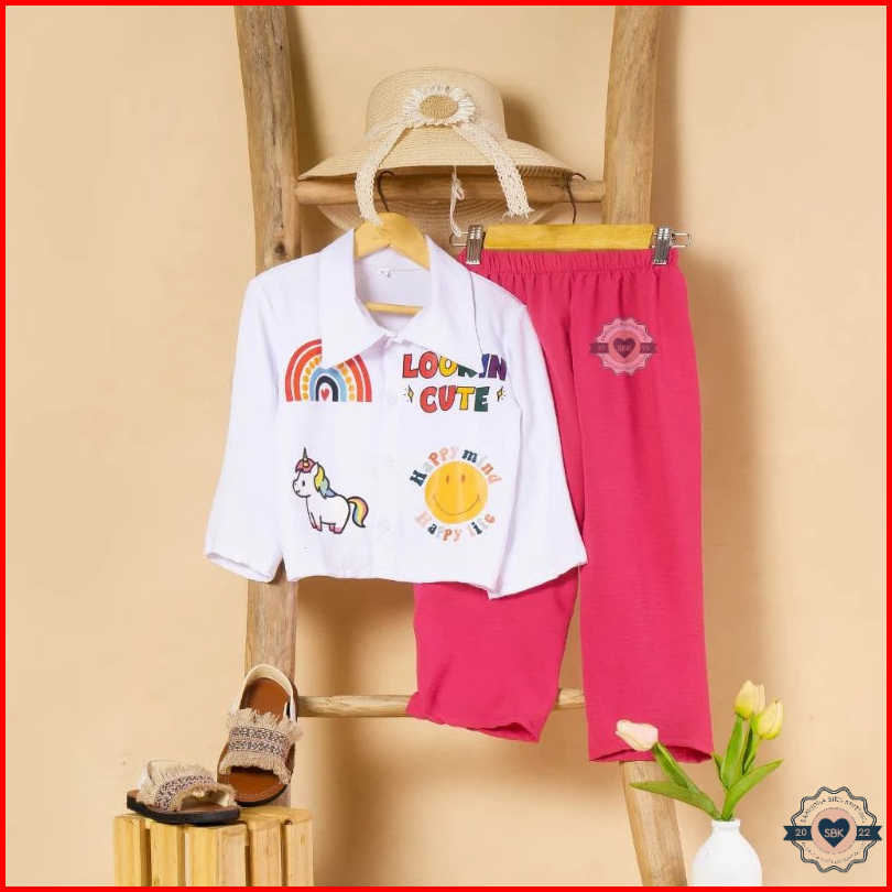 Baju Setelan Anak Perempuan Crop Top Emoji Viral Crinkle Dtf Baju Kemeja Anak Cewe Usia 2-9 Tahun