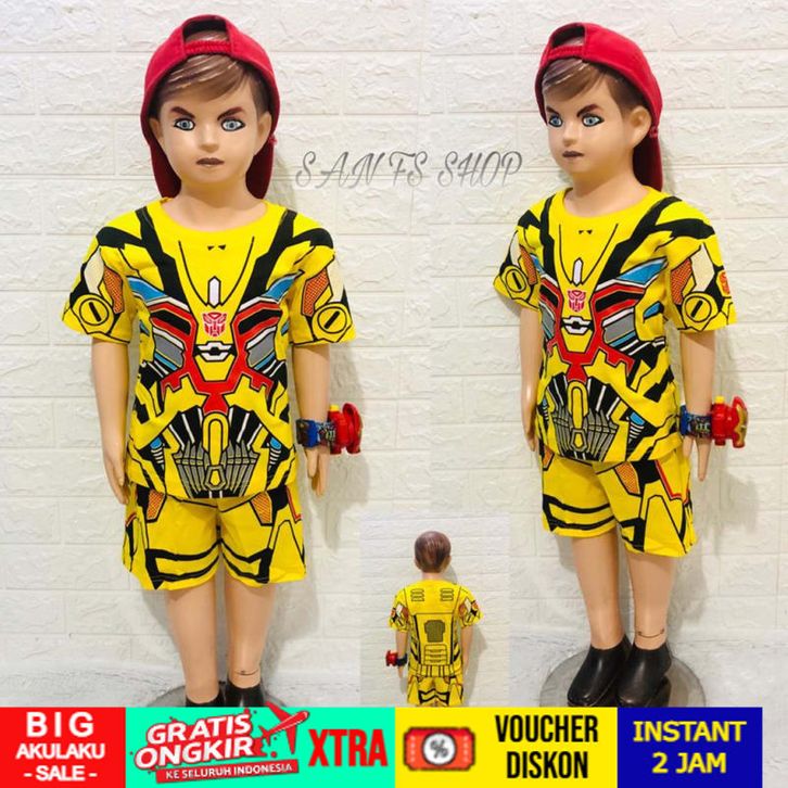 SAN FS SHOP -Baju Setelan Kostum Pendek Anak Laki-Laki Motif Bumblee bee Untuk 1-10 tahun BAHAN PREMIUM