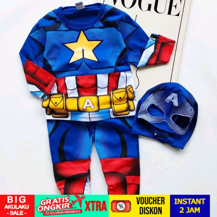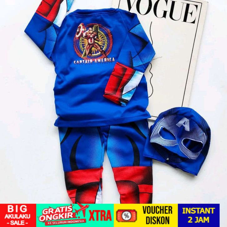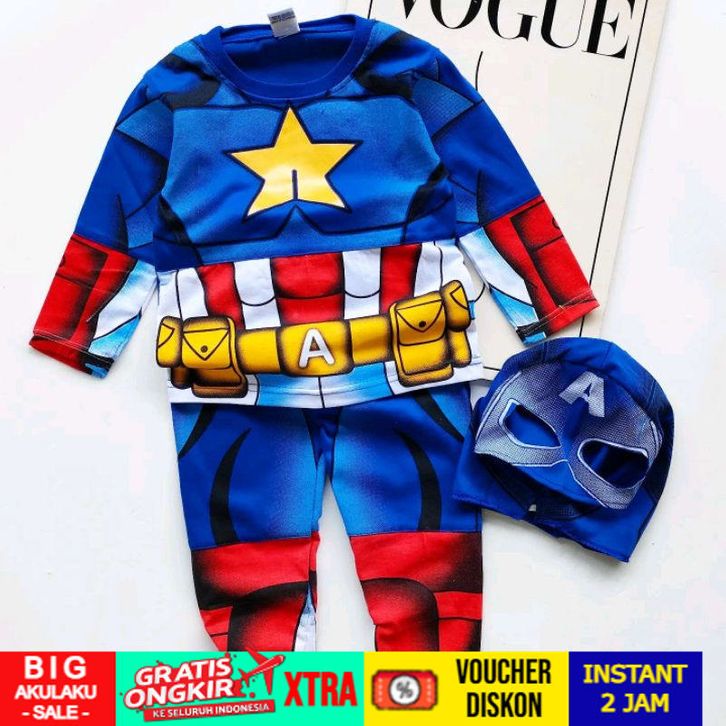 BAJU SETELAN ANAK KAPTEN AMERIKA KOSTUM CAPTAIN AMERICA ANAK TOPENG KAIN UNTUK UMUR 1-10 TAHUN BAHAN PREMIUM