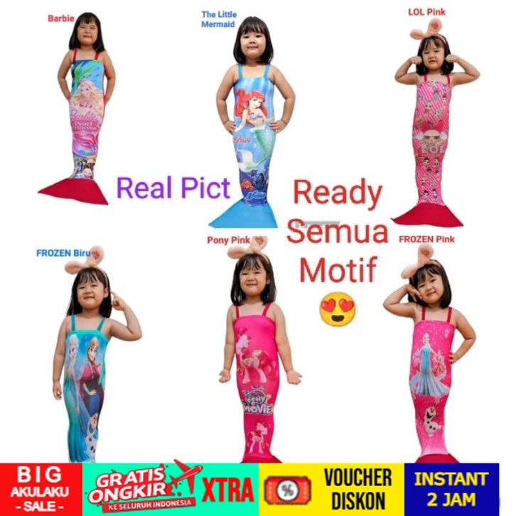 Glosir Kostum Mermaid Putri Duyung Mainan Anak anak Motif kartun FROZEN, Hello Kitty dan BTS BAHAN PREMIUM