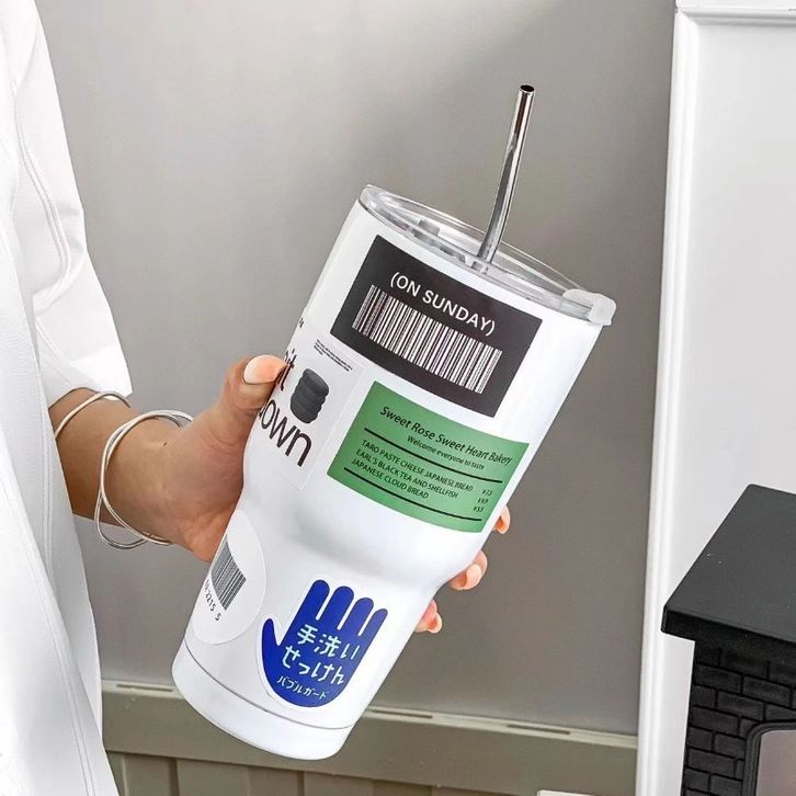 VOOVA 900ml Botol Minum Stainless Steel/900ml Sedotan Cangkir/Boto Minum Kopi Sedotan/Stainless Steel Tumblr Coffee