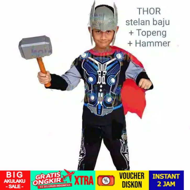 kostum anak Thor + palu / setelan anak kostum thor / baju anak thor bonus topeng BAHAN PREMIUM