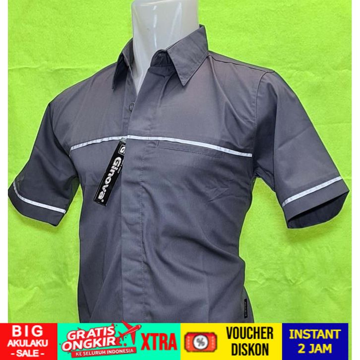 KEMEJA ABU LIS GLOW IN THE DARK. KEMEJA KASUAL BAJU KERJA SERAGAM KERJA GINOVA DRILL BORDIR BAHAN PREMIUM