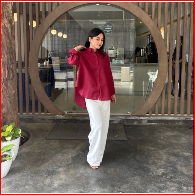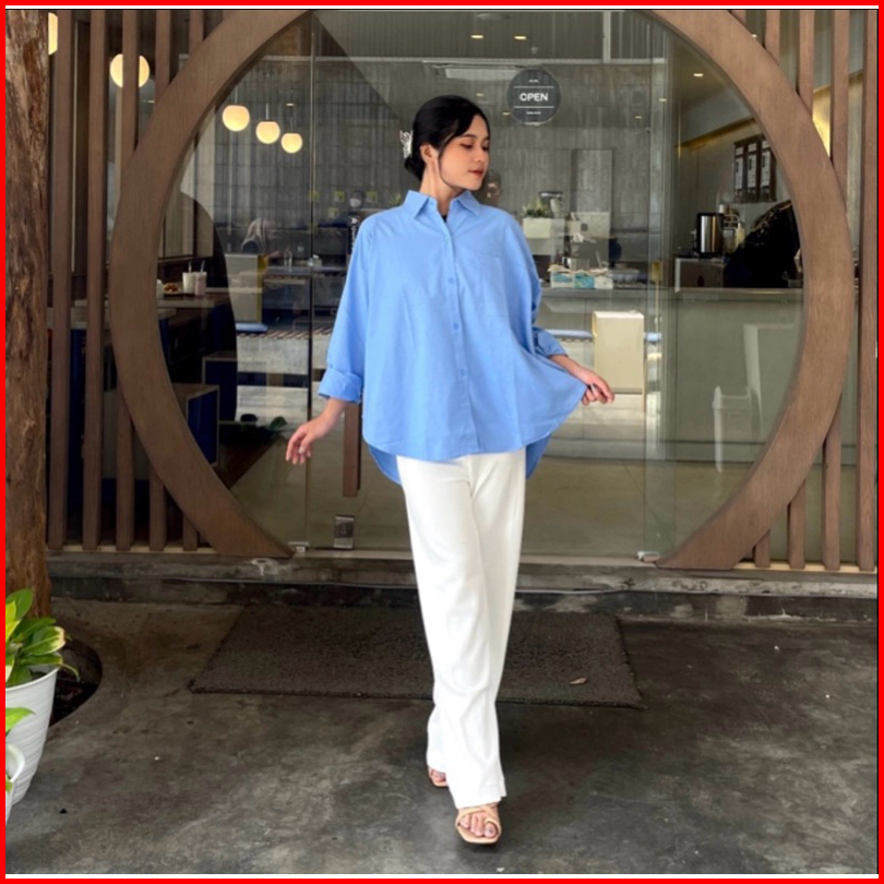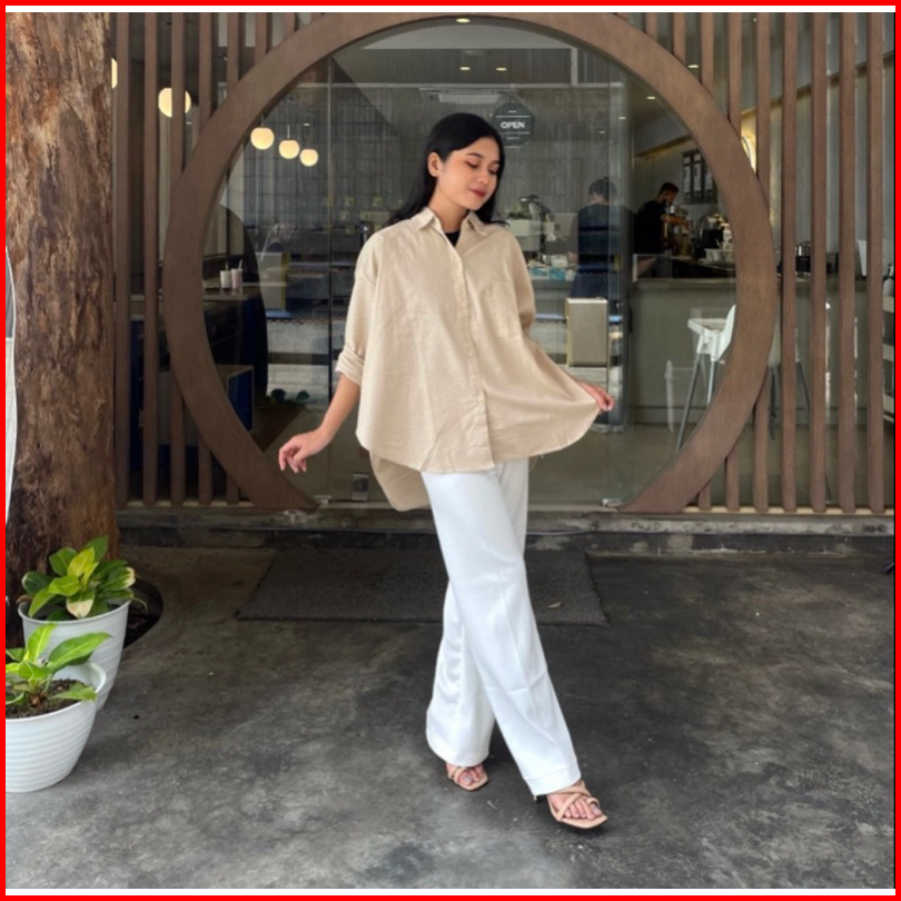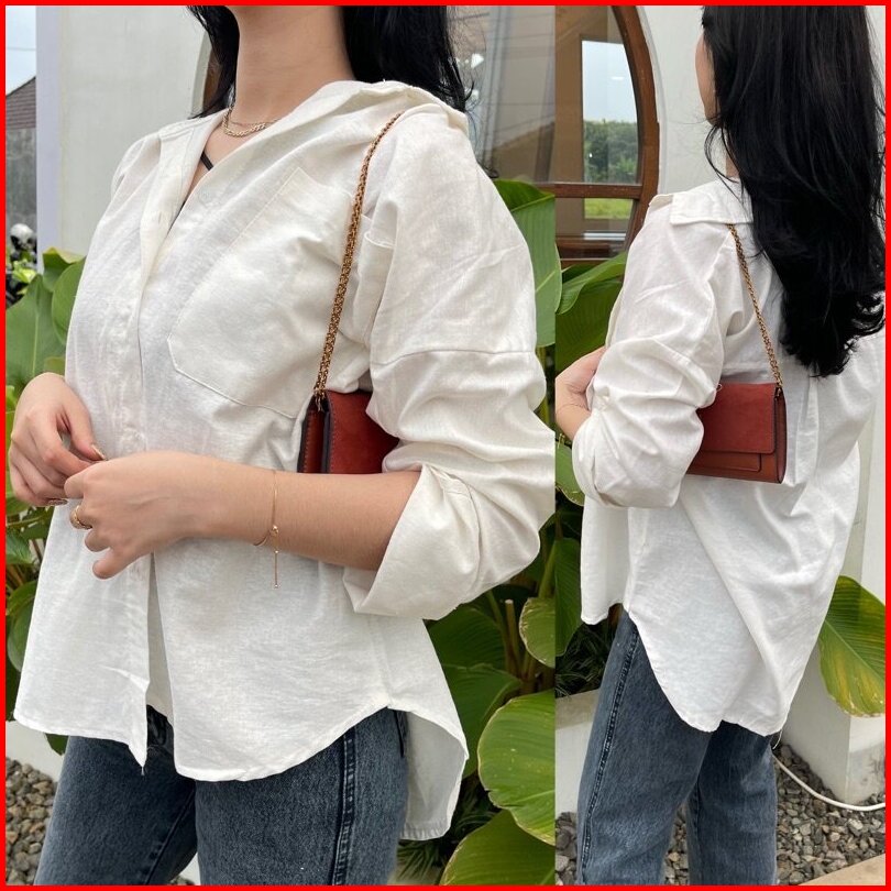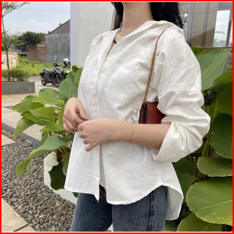 Kemeja Linen Oversize - Shirt Polos - Shirt Oversize - Kemeja Basic Wanita - Kemeja Wanita Premium - Kemeja Kerja Wanita